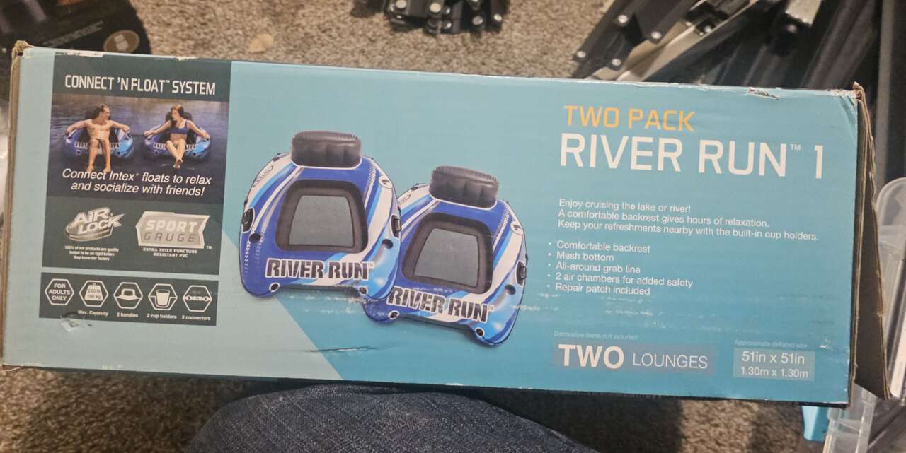 CashAppBrand New in Box and Never Used - Set of Two Intex River Run 1 Lounges. Interconectable. Connect n float system.
