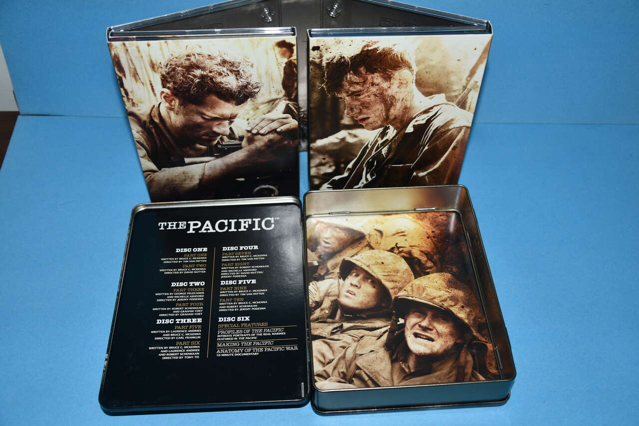 This "THE PACIFIC" has 6 DVD's. Our home is smoke free. Questions??? Please ask. We are located in Plain City. Cash only please.