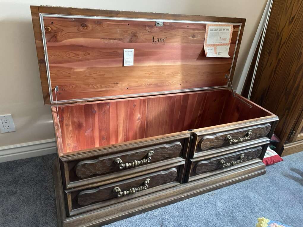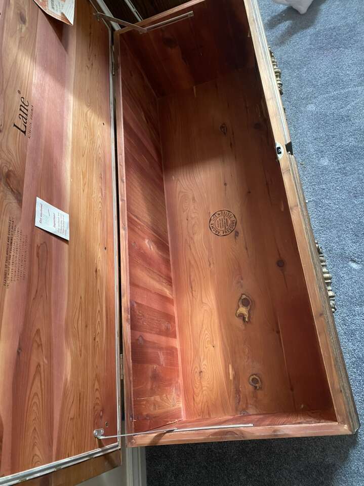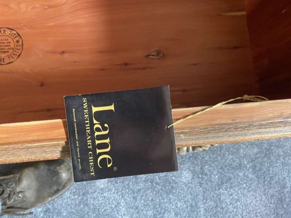 VenmoThis is a Lane Cedar hope chest from 1973. It is in perfect condition with a gorgeous tapestry cushion. Comes from a clean smoke free home. Perfect working lock and keys. Dimensions are 18x49x19.5. Asking $375.