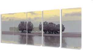 We have one The Stupell Home Decor Collection Trees on a Lake 5-Piece Wall Art Set on Canvas #96174 available. This wall art is New and comes out of box.