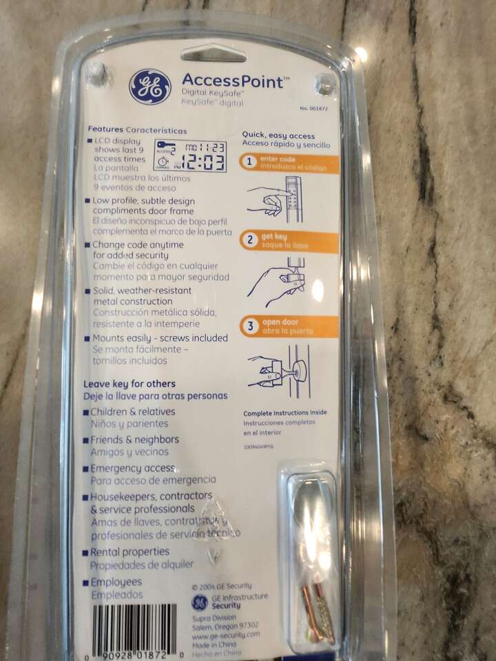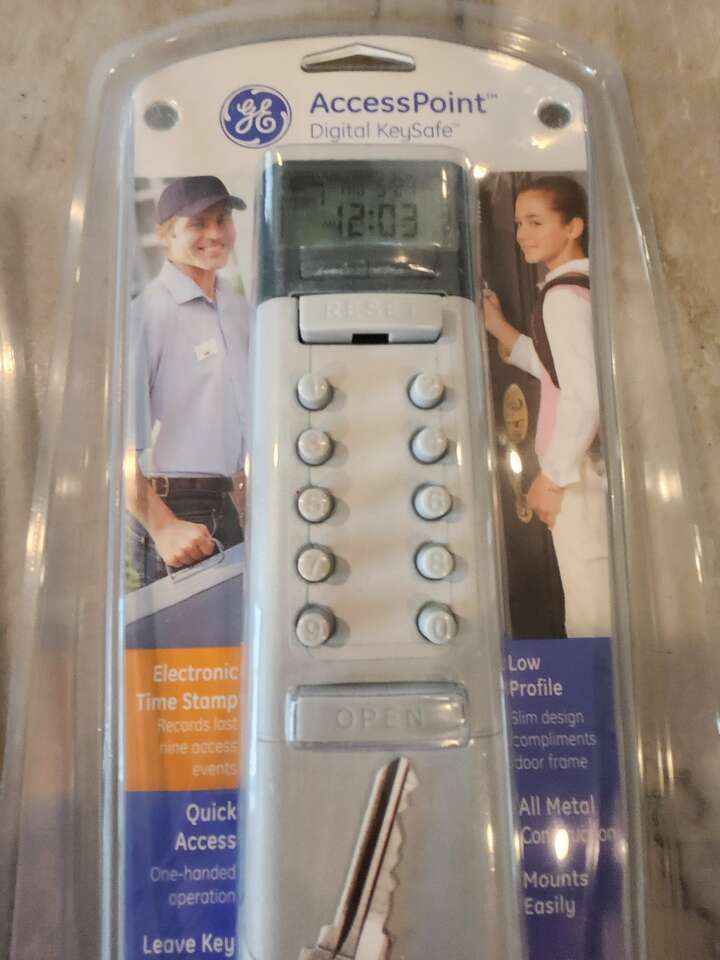 GE Digital Key Safe. All metal construction. Slim design, if you choose to install in a doorframe. Safely leave a key for others -- family members, friends or neighbors, or service professionals. Chaange code anytime. New, in package.