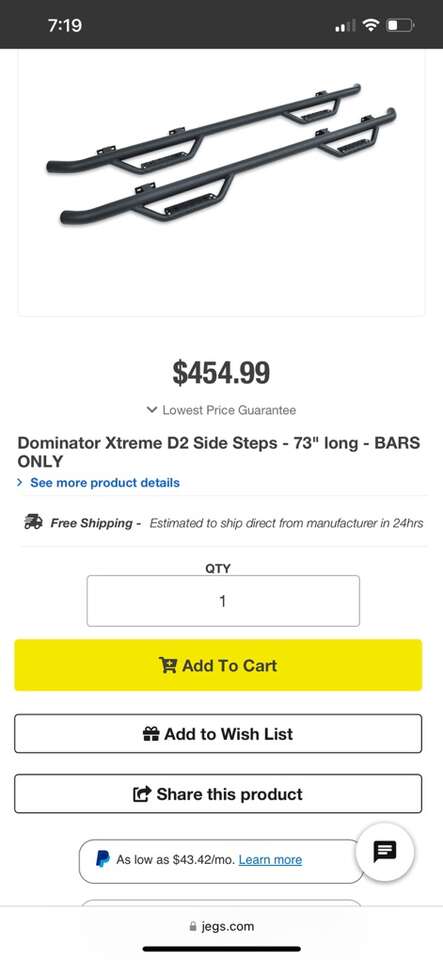VenmoI have new in the box Dominator series 73” Universal steps. They are the bars only they sell new for 4-450 asking $250 they are the exact model and size as in the picture.