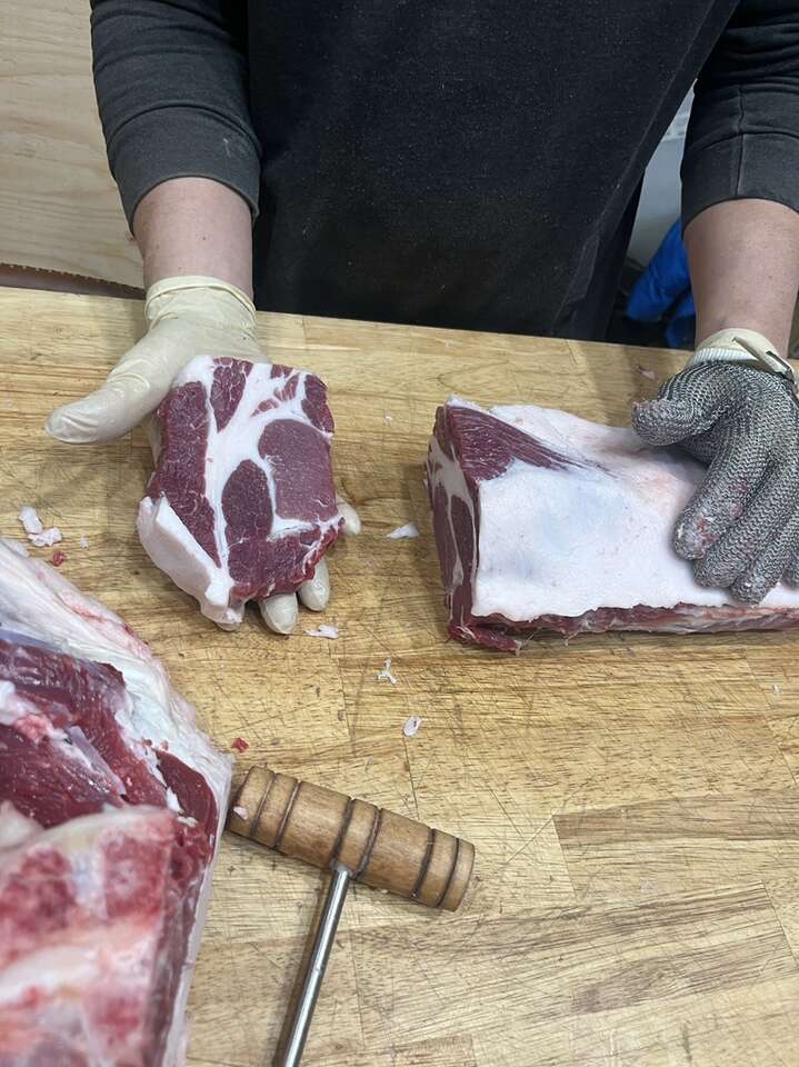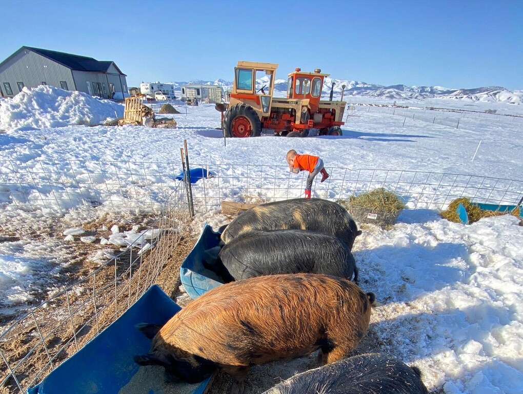 Idaho Pasture pigs are an up and coming breed created for homesteaders. A mixture of Kune Kune, Duroc and Old Berkshire. They mainly eat grass in the summer and hay in the winter with a small amount of mineral feed to fulfill their mineral needs. Friendly as they come like the Kune Kune but growing out in about 10-12 months. They get fat on grass and they taste amazing! We love these piggies and how calm they are and how well they grow. They absolutely love Kochia weeds and will eat it until it’s no longer growing if allowed, so if you have a Kochia problem let them take care of it and turn it into Bacon! We put ours out on a shared pasture with goats, horses, and cows and they do great.