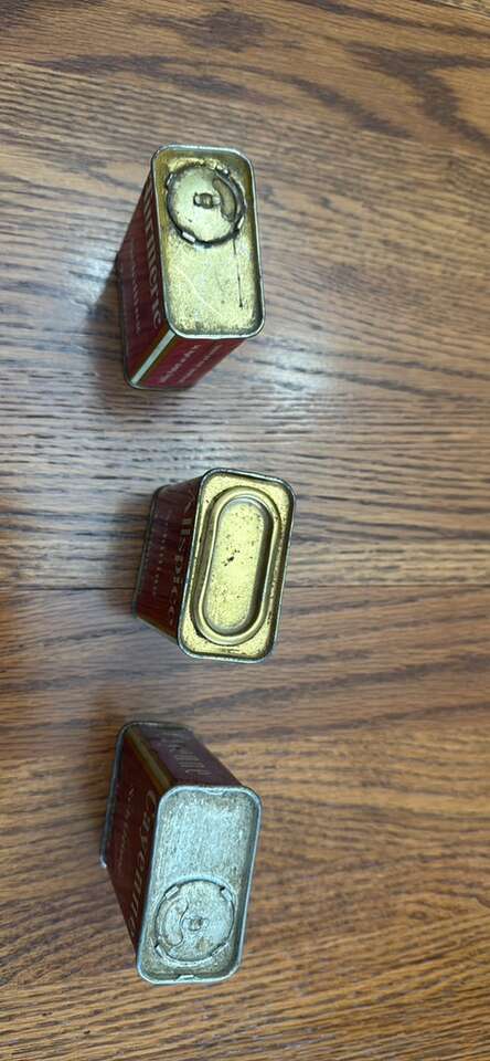 ZelleAfter speaking with McCormick these spice tins were manufactured between the 1930s and 1950s. There is no date stamp or UPC code. No attempts to clean up have been made. Didn’t want to disturb them. $10 each. Stored and smoke and pet free home. Thanks for looking.