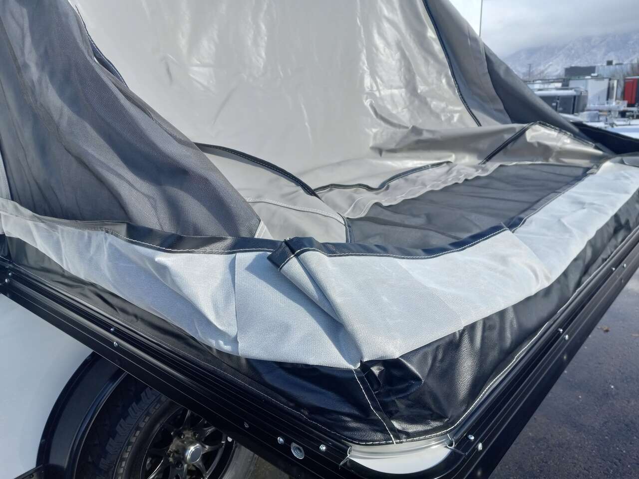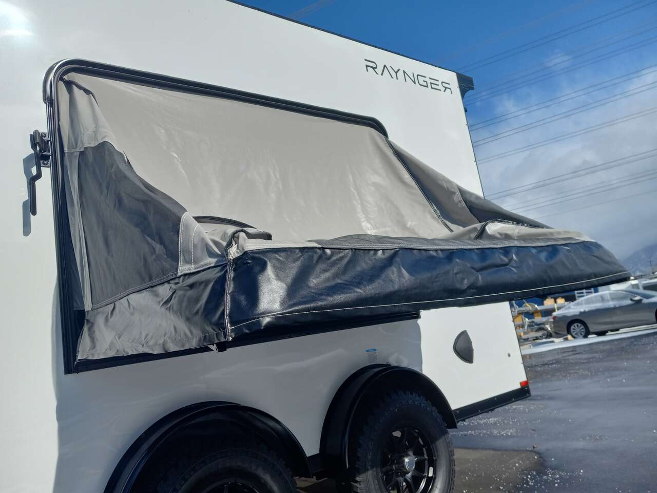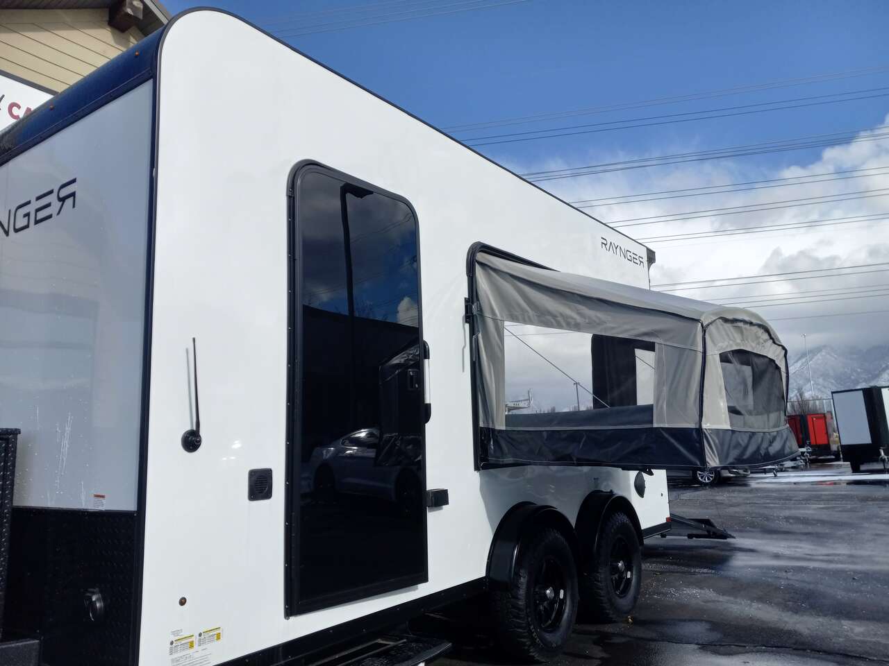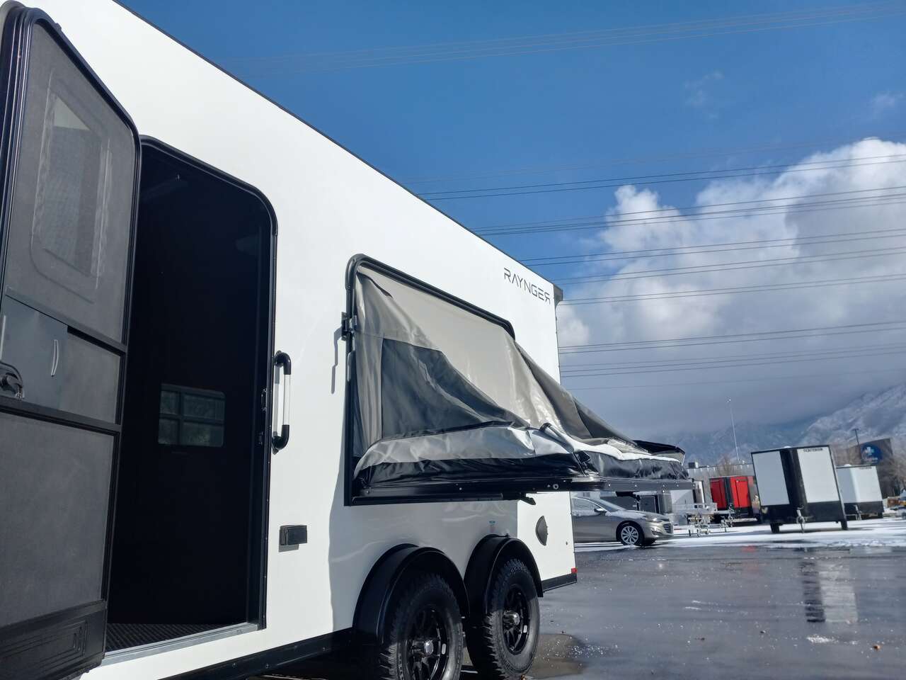 LIMITED TIME $224 A MONTH WITH ZERO DOWN WITH OUR SPECIAL LOCAL CREDIT UNION PARTNER!!! NO PRE-PAYMENT PENALTIES!!! NEW 7.5 WIDE MODEL!!! FITS ANY STOCK SIDE BY SIDE UTV!!! RAYNGER PREMIUM OFF ROAD TOY HAULER CAMPER!!! 18 INCH GROUND CLEARANCE!!! OFF ROAD TIRES!!! FULLY INSULATED!!! HEATING AND A/C!!! WET SOUND STEREO!!! FOLD OUT/POP OUT TENT WITH MATTRESS!!! 84 Inch Rear Entry Height/87 INCH INTERIOR HEIGHT!!! 83 Inch Rear Entry Width!!! Ventilated Locking Generator Box!!! UPGRADED TORSION AXLES!!! 14.2 Foot Long Garage Space!!! And Much MUCH MORE!!! Check out our Specs!!! Also available in 18 foot models. 18 Foot Models can have 3 Fold Out Beds/Pop Out Tents. 16 Foot and 18 Foot Models will fit ANY stock 4 Seater Side by Side • 6” I Beam Frame• Flat Top Design• Flat Front Design• Wall Posts 16” on Center• Cross Members 16” on Center• Roof Bows 16” on Center• Rust Inhibiting Z-Tech Protection on Chassis• Ameraguard on Tongue• Ameraguard on Rear Bumper• Ameraguard Around All Door Openings and Stepwell• Ameraguard Around Edges of Ramp Door• 3500 LB Spring Axles• 2-5/16” Coupler• One-Piece Aluminum Roof• ST235/75R15 Aluminum Wheels with Chrome Center Caps• 2000# Ramp Door with Eberhard Latch• 30” Tempered Glass RV Door with Screen Door• .030 Exterior Metal with Screwless Sides• 24” Black Stoneguard• 3” Black Bottom Trim• Sand Pad• Black Door Hold• 2.7mm Charcoal Textured Vinyl Ceiling • 9mm Charcoal Textured Vinyl Walls• 3/4” Engineered Wood Floor with Rubber Coin Overlay• (6) 1200 LB Floor D rings Installed with Backer Plates• LED Clearance Lights and Tail Lights• LED Back-up Lights• No Show Wheel Box• Spoiler with Toggle Switch• RV Step• 7’ Interior• (2) 17” Chrome Base Lights with Switch• (1) Black 17” Spot Light with Switch• (1) 30 Amp Panel with Marine Plug• A/C Unit with Heat Strip• (3) Interior Recepts• (1) Exterior Recept• 12V Battery and Charge Line• Prep for Backup Camera• Wet Sounds System• (3) Blue Interior Cabinet Lights• (1) 6’ Section of Flex Lights• Black ATP Rear Header and Hoop• Black ATP Fenders• Insulated Walls & Ceiling• Base Cabinets• Overhead Cabinets with Netting Over Compartments• Pop Out Tent• Black ATP Storage/Generator Box Mounted On Tongue 2SW094859
