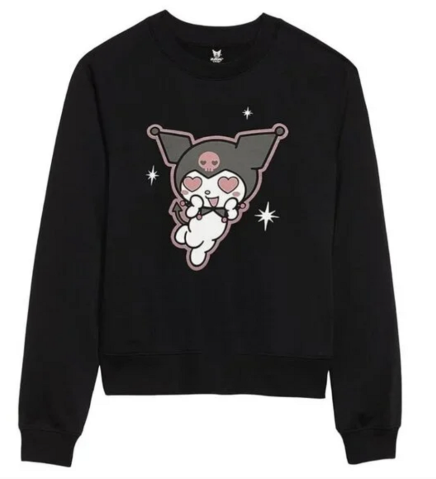 VenmoSANRIO Adult Size Large Soft Cozy Crewneck Sweatshirt featuring Hello Kitty and Friends Kuromi with Heart Eyes. Excellent like new condition as it was only worn twice. It was washed in cold water, dried for 5 minutes to remove wrinkles, and then hung to finish drying.