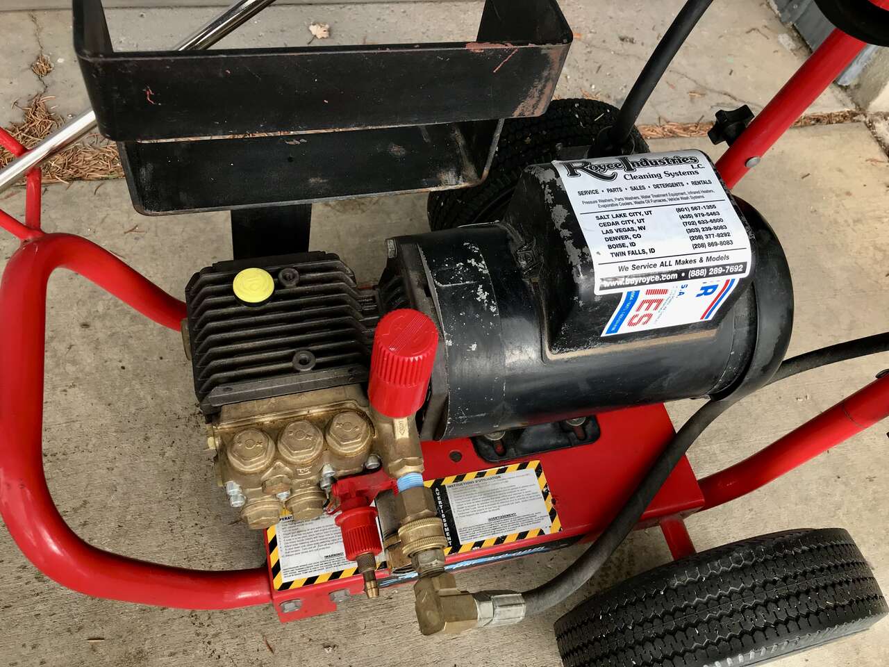The carted cold water, electric powered pressure washers use a heavy tube steel frame protected by an industrial coating. This frame style offers excellent portability and is equipped with two 10” tires. 1000 psi pressure washer features include an industrial motor that is totally enclosed and thermal overload protected, industrial triplex plunger pump with ceramic plungers and stainless steel valves is protected by unloader valve. This 2 gpm pressure washer is equipped with low pressure chemical injection for application of concentrate liquid detergents and is activated by a hi-low pressure adjustable nozzle on the trigger gun.