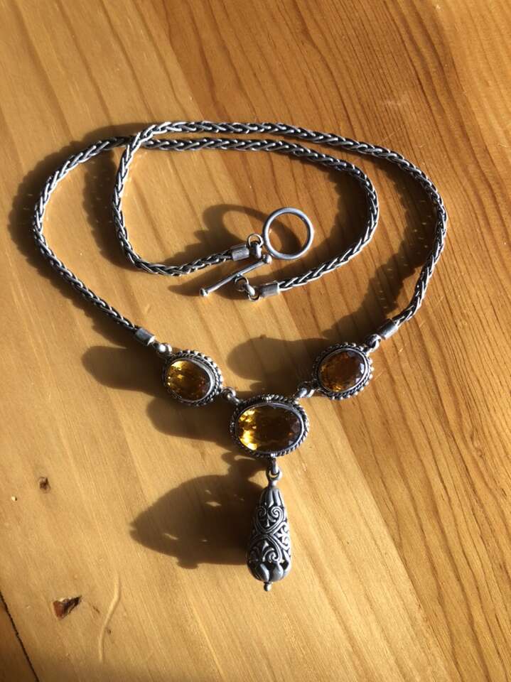 Amazing statement piece! 16 1/2 inch sterling silver braided necklace with 12.1 ctw citrine. New in box!