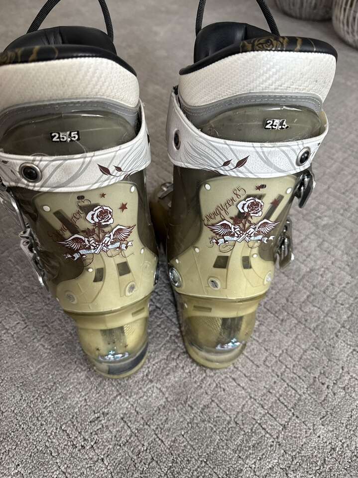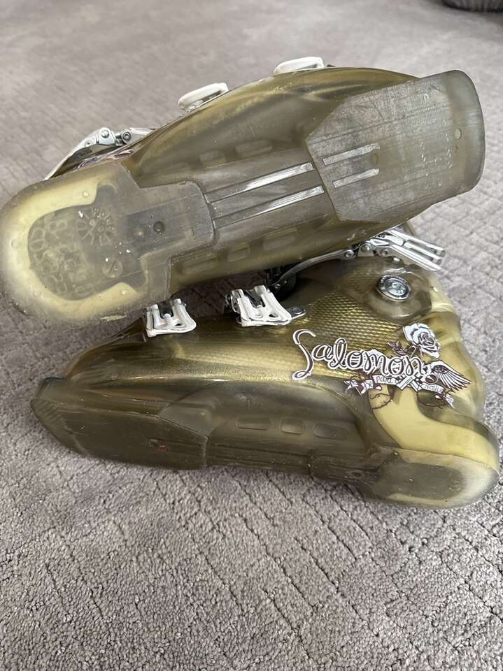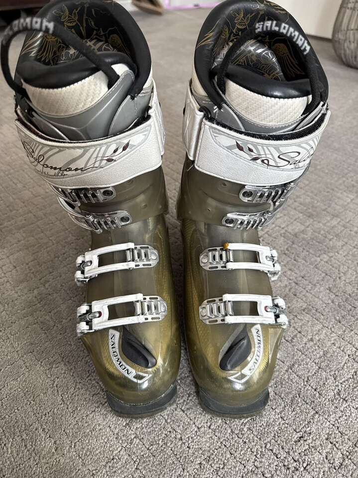 Women’s Salomon Scarlet Energyzer 85 ski boot, size 25.5, used - decent condition. $40. Cash only, local pickup. If still listed, still available.