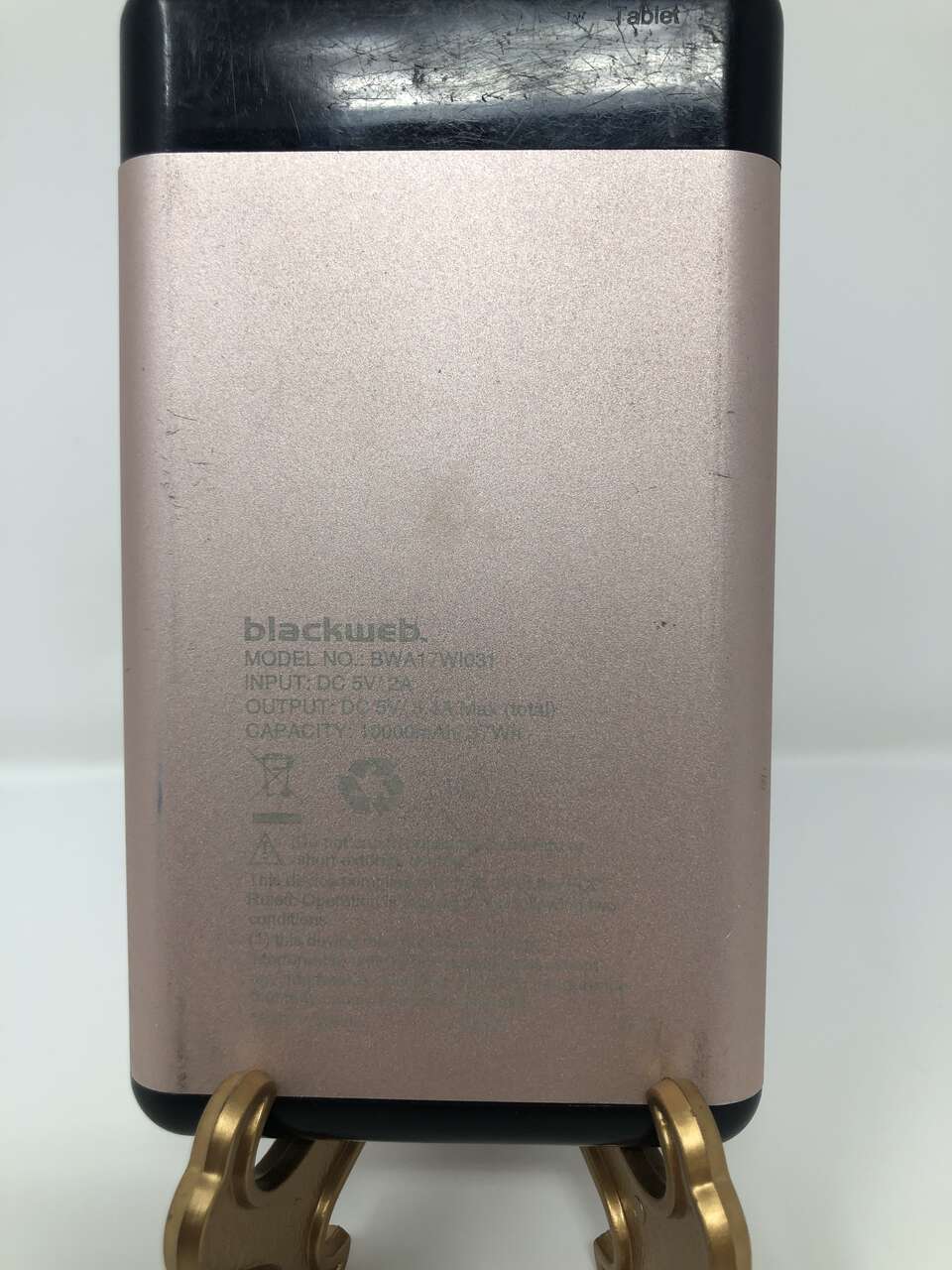 VenmoBlackweb power bank with 2 USB outputs and a C-charger input. The power button is next to the C-charging port, and it turns on the digital display. This display tells you how charged the power bank is.
