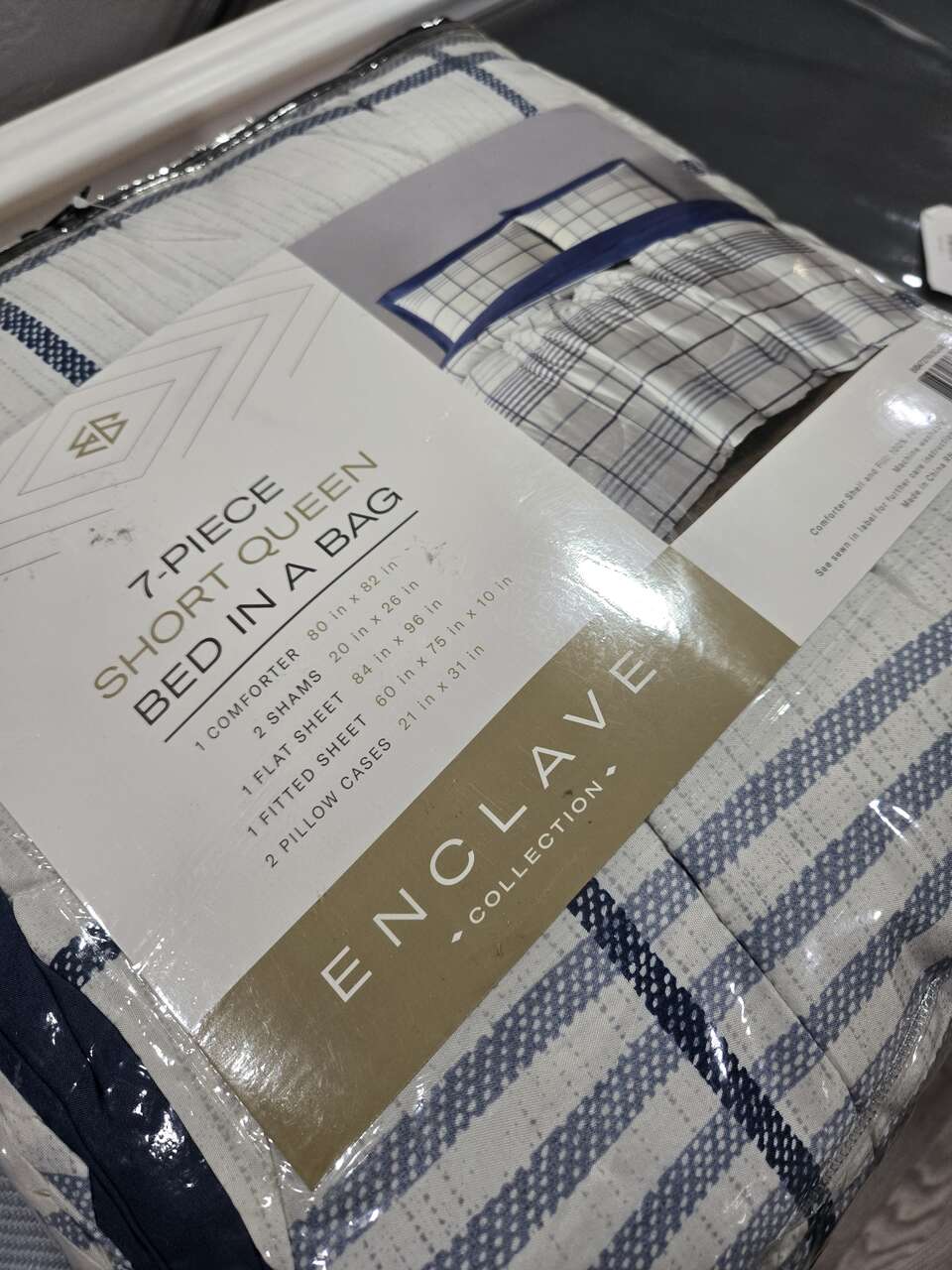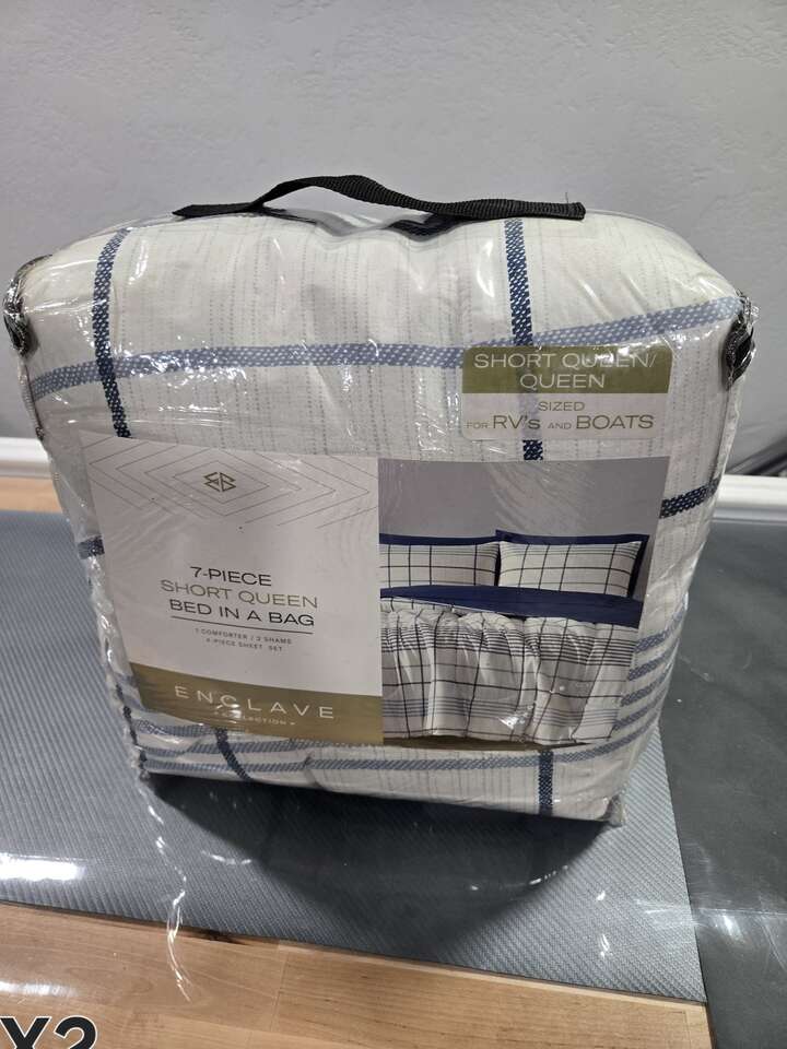 Short Queen Sheet Set Comforter – 80" x 82" 2 Pillow Shams – 20" x 26" Flat Sheet – 84" x 96" Fitted Sheet – 60" x 75" x 10" 2 Pillow Cases – 21" x 31"