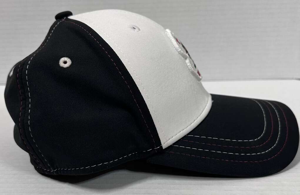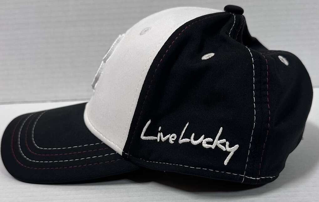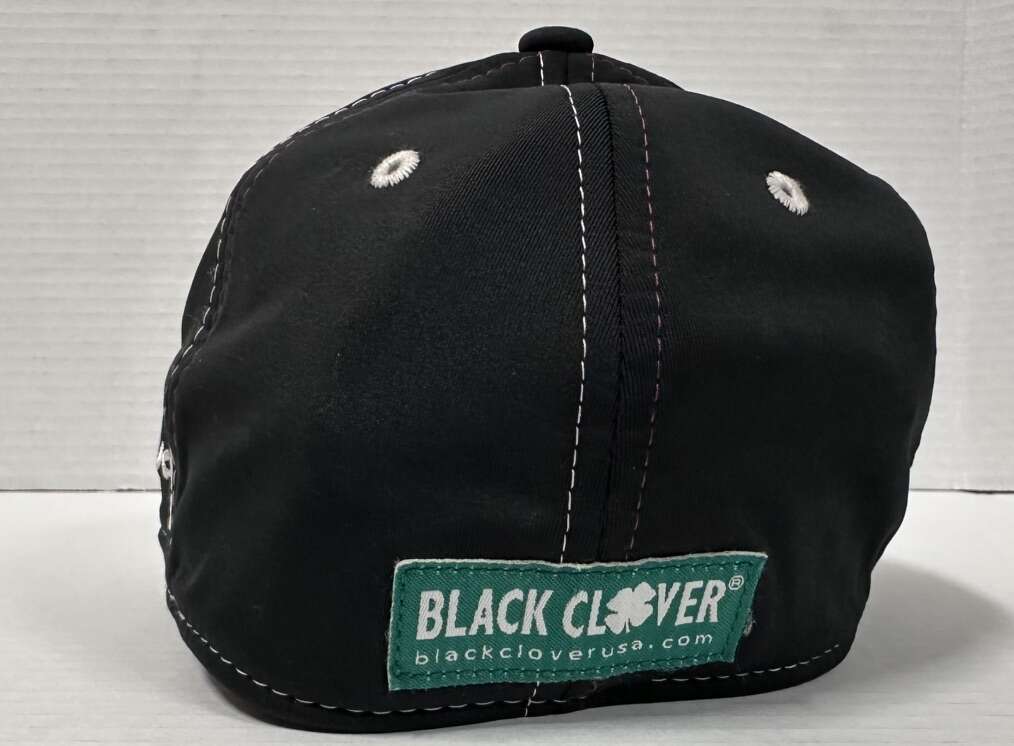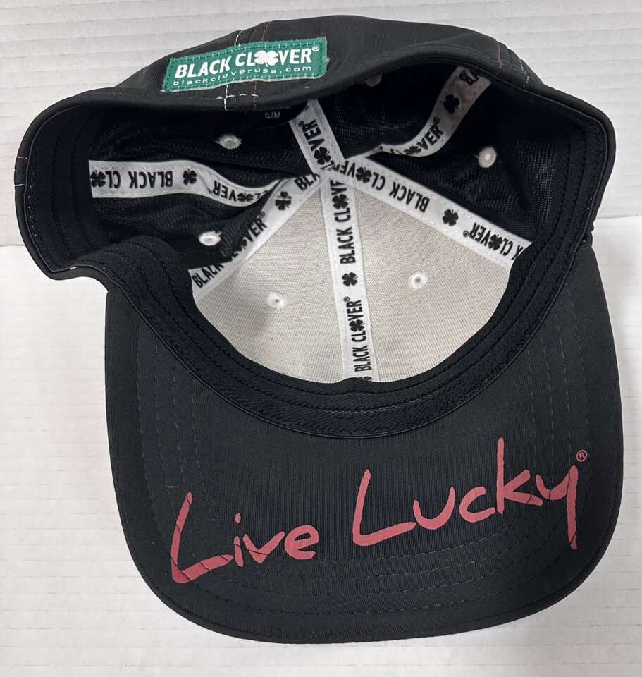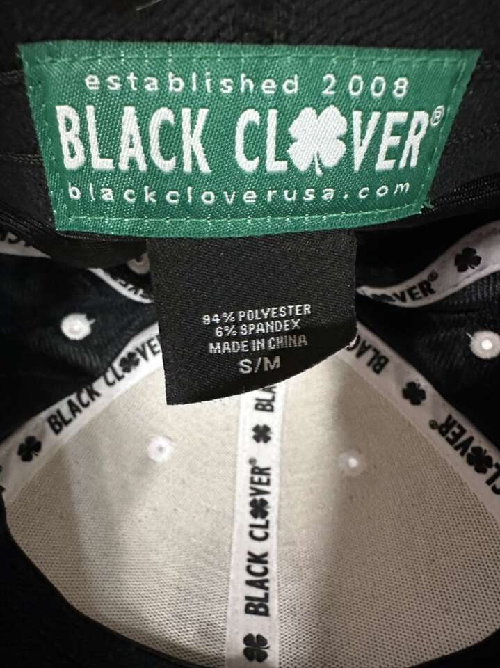 The Black Clover California Luck Hat in size S/M is a pre-owned baseball cap featuring a solid black and white color scheme. It is designed for unisex adults and made of polyester material. The hat is adorned with the Black Clover brand logo, adding a touch of style to the classic baseball cap design. Perfect for adding a sporty and fashionable accessory to any casual outfit, this hat is sure to bring some luck to your day.
