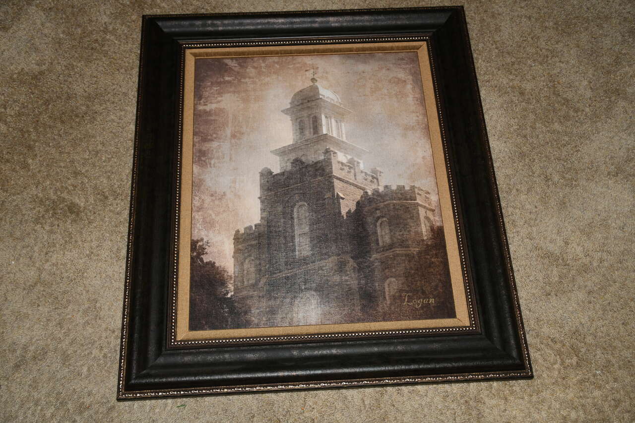 This BEAUTIFUL LOGAN TEMPLE PICTURE is SEPIA TONED & TEXTURED. It is 26" x 31" FRAMED. Our home is smoke free. Questions??? Please ask. We are located in Plain City. Cash only please.