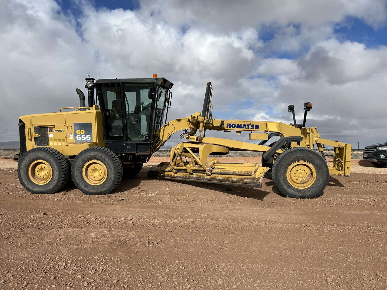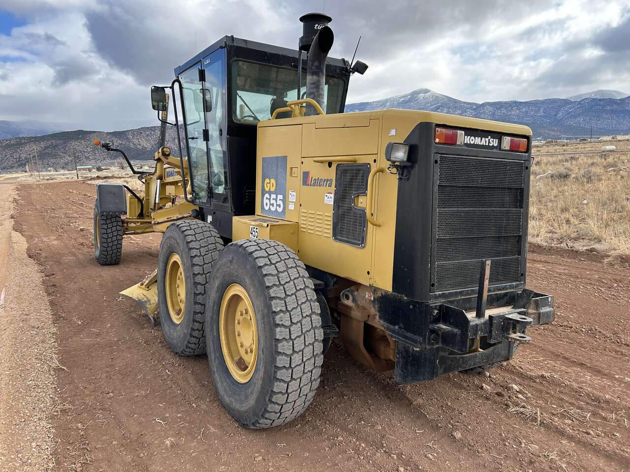 2005 Komatsu GD655S Laterra Motor Grader, 8344 Hours, 200 HP Engine, Rebuilt Power Shuttle Transmission - 8 Forward - 4 Reverse, 14' Wide Blade with 2' Extension = 16', Radial Tires, Front Remote to Hydraulic Front Blade/Plow Coupler, LED Plow Lights, Front Fenders, Enclosed Cab, Heat and AC, Radio, Cab Fans, Adjustable/Tilt Steering and Control Console. Asking $65,500.00 - Located in Cedar City, UT