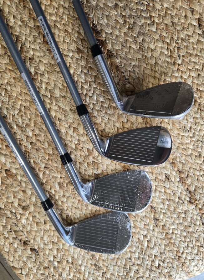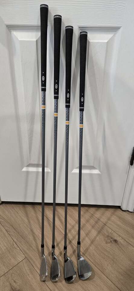 Brand new lefthanded clubs. Set includes 6, 8, Pitching and Sand wedges. Optimal for kids 63" to 66". See pictures for details. Great set to get started in golf.