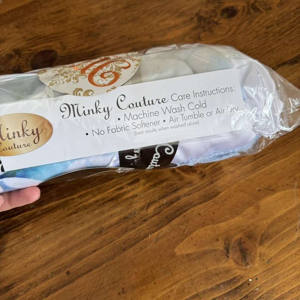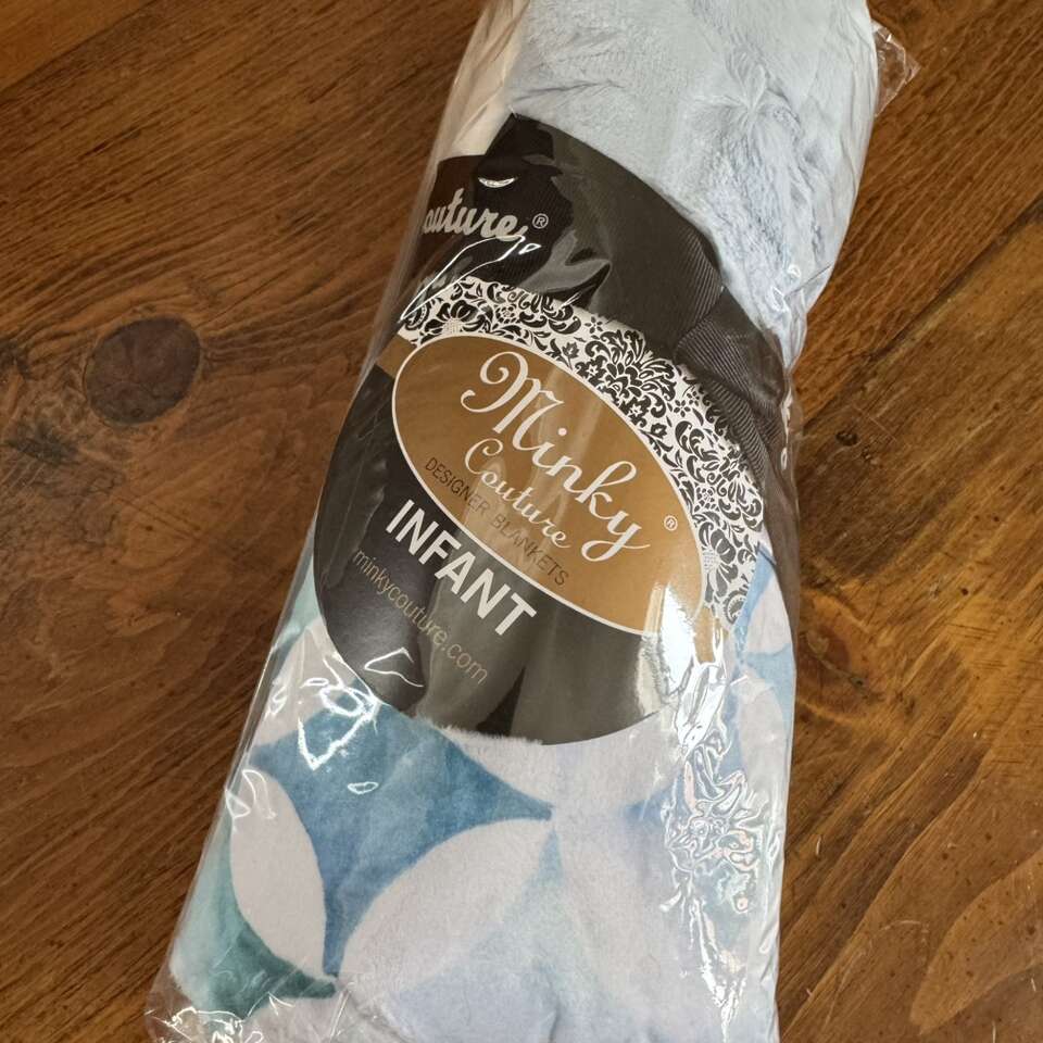 Minky Couture Infant Sized Blue Blanket New