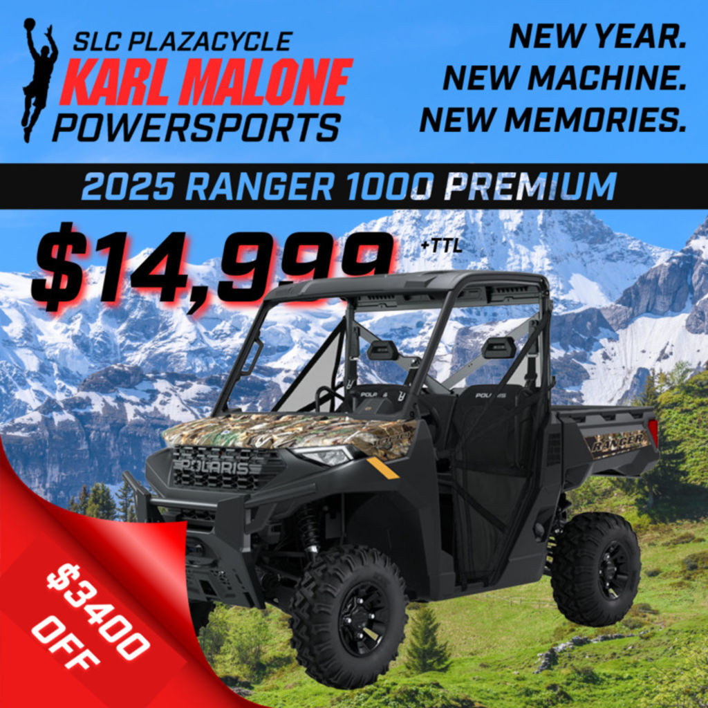 PRICE REDUCED! NO FREIGHT OR SET UP FEES! Call or text Karl Malone Powersports SLC at 801-972-8725 for quick, hassle-free out-the-door pricing! With top brands including Polaris, Can-Am, Yamaha, Honda, Kawasaki, CF Moto, and more, we have everything you need to get out and ride this season. New 2025 Polaris Ranger 1000 Premium Side by Side UTV For Sale In Salt Lake City, UT This New 2025 Polaris Ranger 1000 Premium Side by Side UTV is for sale at Karl Malone Powersports SLC conveniently located in Salt Lake City, Utah. Our knowledgeable team is eager to assist you, so don’t hesitate to contact us today to schedule an appointment. If this isn't the exact Polaris Side by Side UTV you're looking for don't hesitate to go back and revise your search. We're sure to have the perfect Side by Side UTV for you in our showroom in Utah. We invite you to visit us at Utah’s premier Polaris dealer for new and pre-owned Side by Side UTVs for sale. Let us help you find the ideal Side by Side UTV to take home today! Karl Malone Powersports SLC Address: 1379 W 3300 S, Salt Lake City, UT 84119 Phone: (801) 972-8725 2025 Polaris Ranger 1000 Premium THE EVERYDAY WORKHORSE UP FOR THE TASK Make your days count with RANGER 1000. Its powerful engine delivers class-leading hauling and towing to boost efficiency on the job. Features may include: COMFORT Take on a full day off road, with plush seating and integrated in-cab storage to stow your essentials. CAPABILITY Get more done in a day with RANGER 1000. Its purpose-built single overhead cam (SOHC) engine delivers smooth, quiet power and outstanding low-speed performance—helping you and your crew get the job done. Extra Pulling Power Complete the job or get back on the trail quicker, thanks to the pulling power of a factory-installed Polaris HD 4,500-lb. winch with synethic rope, autostop and wireless remote, available on RANGER 1000 Premium. Ready to Tow Maximize the class-leading 2,500-lb. towing capacity for large loads by connecting your trailer to the standard 2" receiver. Protect the Lawn For work around the house, use VersaTrac Turf Mode to unlock the rear differential—enabling easier and tighter turns that won't tear up your lawn. DURABILTIY Take on tough jobs and challenging trails, day in and day out, with a vehicle you can depend on. Effortless Shifting Command the driver's seat with confidence, thanks to the upgraded Gen 2 transmission. It reduces shift effort by up to 50% to easily shift between drive, park and reverse - delivering a consistent, predictable feel. Enhanced Protection Boldly navigate rugged terrain with a full-body skid plate, massive front bumper and CV guards that protect wheels and control arms from trail debris. Built to Last RANGER 1000 is built with a strong one-piece chassis and beefed-up front drive to take on the toughest