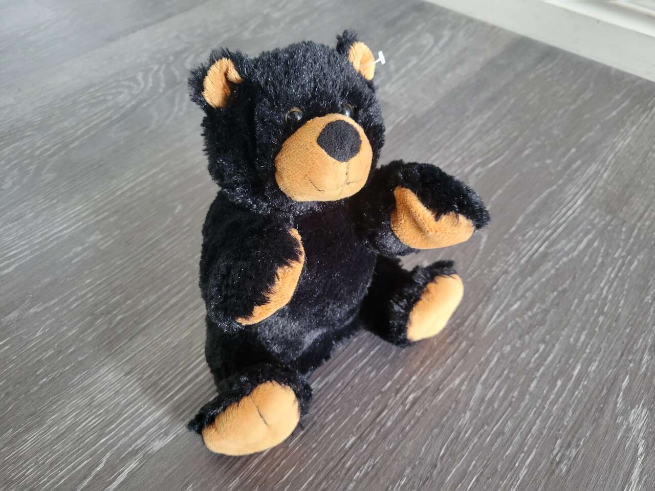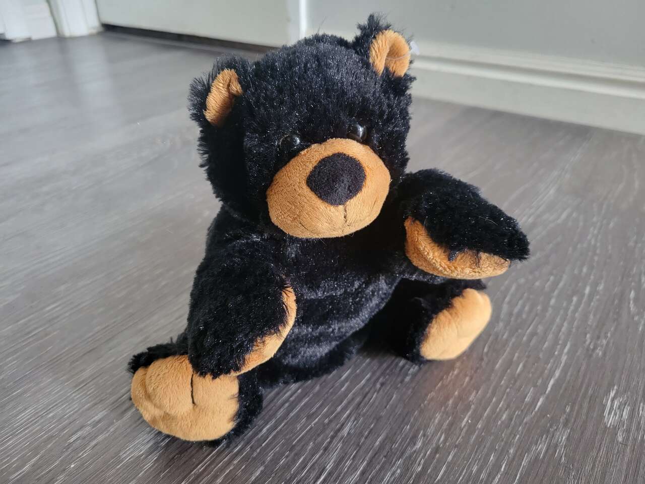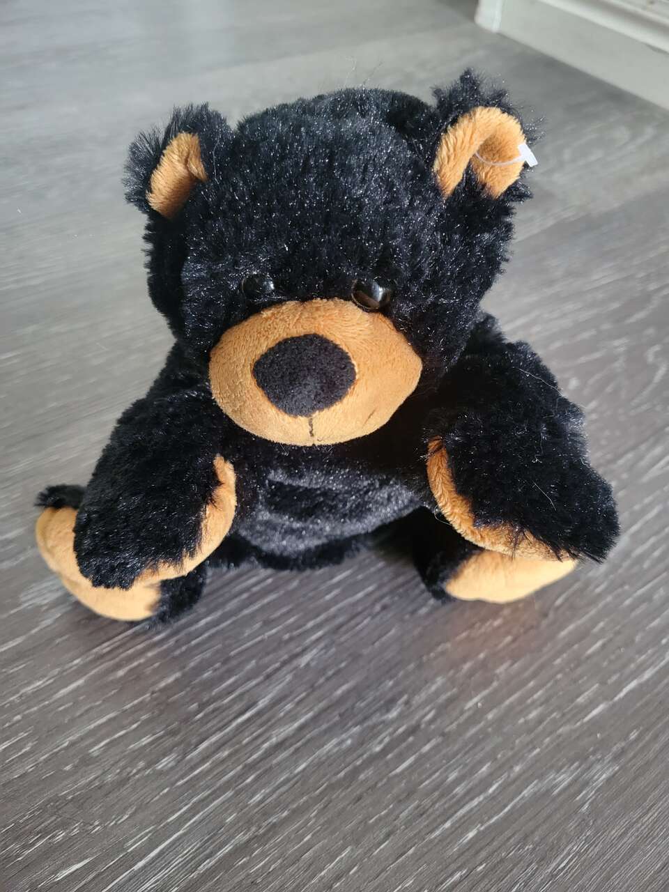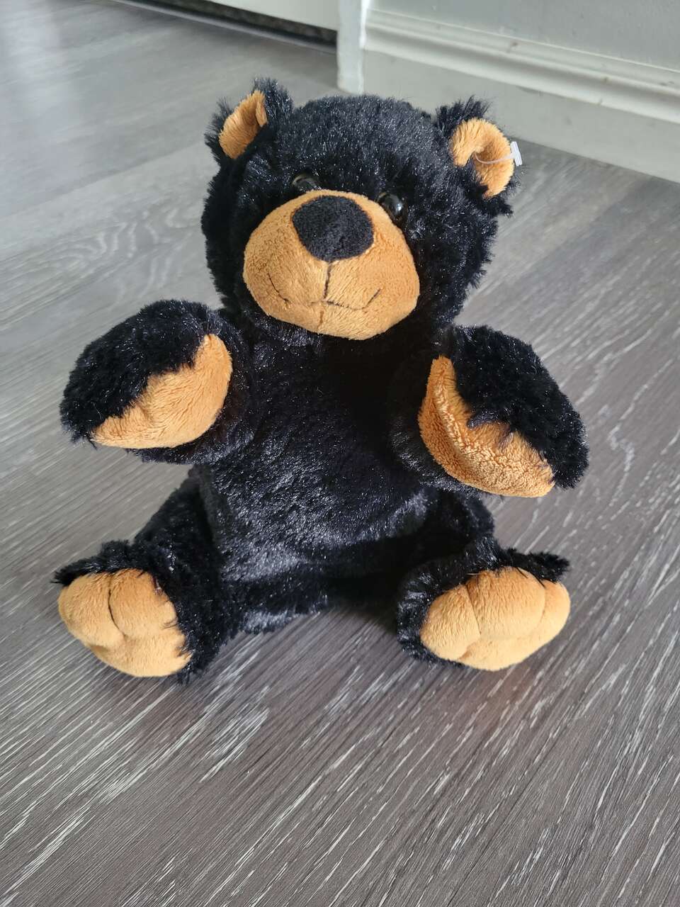 Baby plush Black Bear hand puppet soft stuffed animal 8 1/2 inches tall