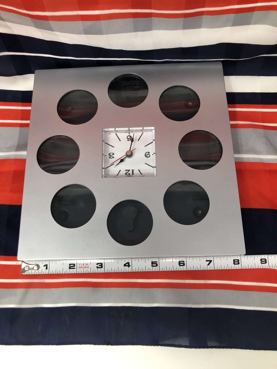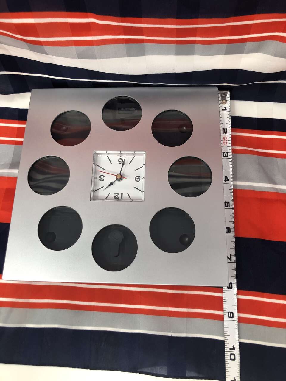VenmoThis beautiful clock has multiple functions. It displays 8 different photos, tells time, and has an alarm clock function as well! The back comes off once you unscrew the 4 screws in the back. Pull the back off and you'll see where you can place your photos. There are glass squares in each slot that you lay your picture on top of. The glass is removable for easy cleaning too.