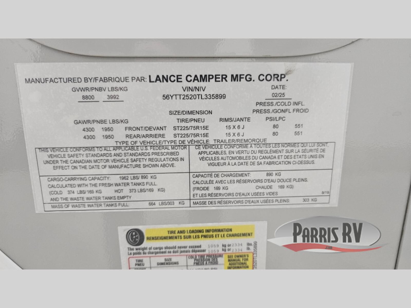 The line-up for the Lance travel trailers centers around three gorgeous interior décor options, a lengthy list of product enhancements, and simplification of ordering with many optional features being made standard. Some of the stand out features you'll want to take note of are the Keyed-Alike storage compartment doors for all of your camping essentials, the dual layer Azdel composite to prevent your unit from rotting, and the durable one-piece TPO roof. The interior includes Euro overhead cabinetry designs, a pop-up electrical/charging tower, and a Shower Miser water system. You'll also find an innerspring mattress with a bedspread, a dual pane shower skylight, USB charging ports to keep your electronics at 100%, plus a JBL AM/FM stereo and JBL interior/exterior Bluetooth speakers to keep the party going!