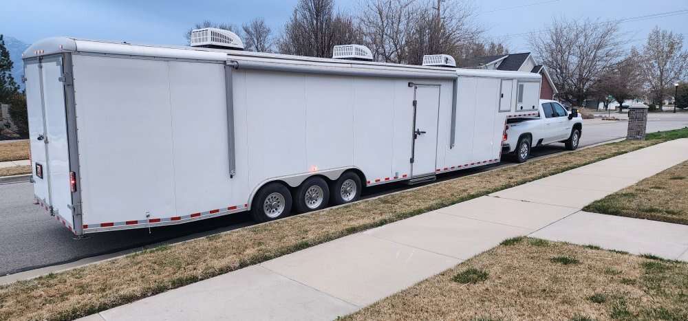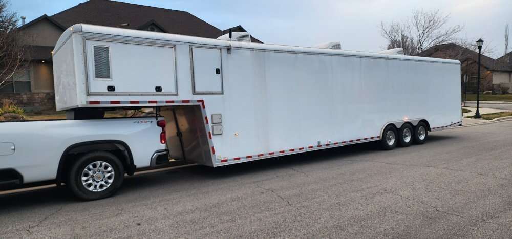 Venmolast week before it is gone and generators pulled etc... 2018 Universal triple axle race trailer. 5th wheel tow auto leverlers 2 12KW Onan generators one one each side, twin gas tanks 3 AC units 3 heaters auto awning barn door with two new 5k lb ea ramps new batteries carpet interior