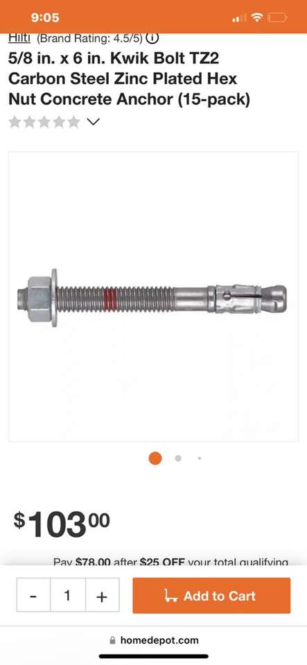 Wedge anchors 5/8x6”