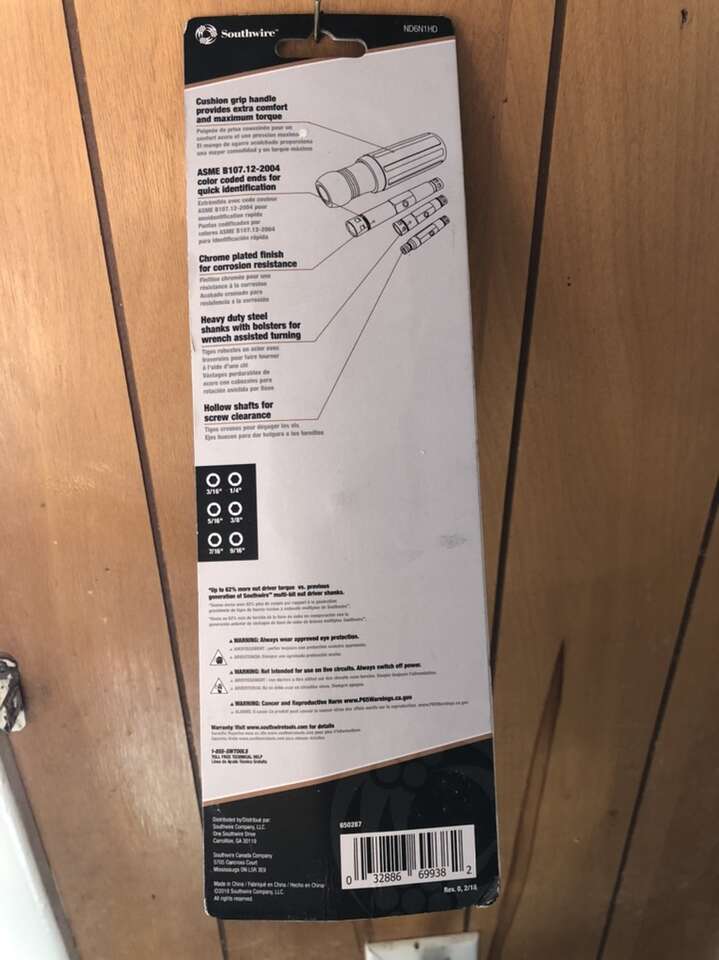 VenmoBrand new in package Southwire 6in1 nut driver multitool. Very handy tool. Heavy duty. Only carry one nut driver! Model ND6N1HD.