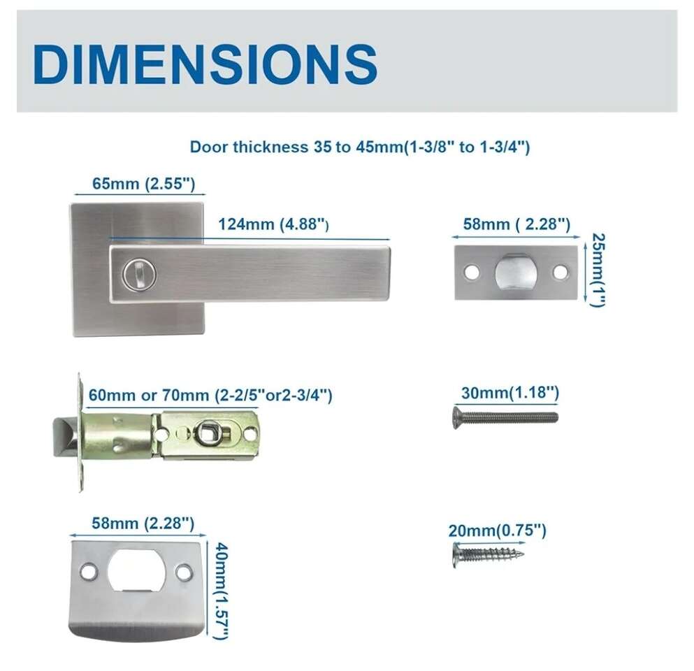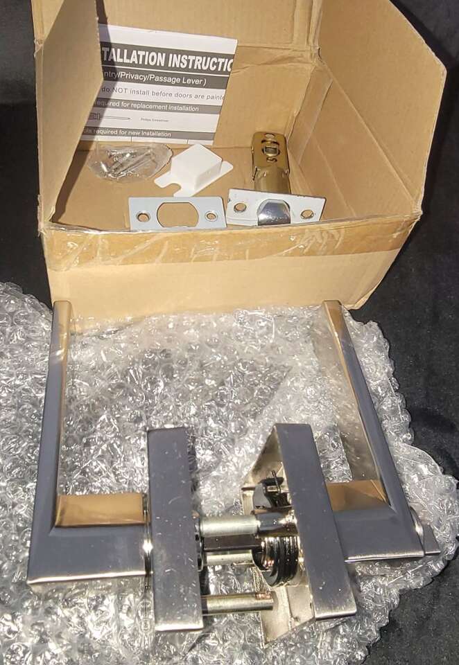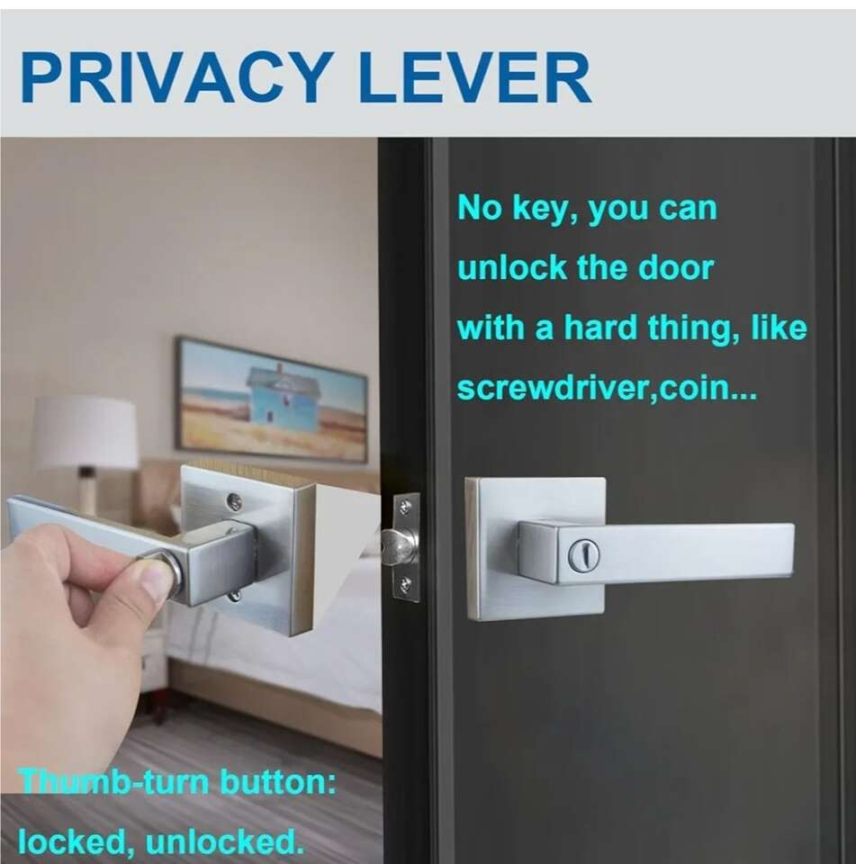 VenmoNew! I have 2 of these available. Square Heavy Duty Bedroom Bathroom Door Lever, Privacy Door Handle, Interior Keyless Door Handleset, 1 Pack (Satin Nickel). They sell online for $20 each plus taxes. Asking $10 each cash / venmo with pickup in North Ogden. About this item FUNCTION: Privacy door lever is keyless, fit for interior doors such as bathroom or bedroom, conference room. HIGH QUALITY AND SECURITY:HEAVY-DUTY DESIGN for long life-time. Zinc alloy handle and rose, materials are anti- rust as well durable. Solid internal mounting plate hold rose firmly. Solid column security bolt for anti-sawing protection. Solid zinc alloy latch bolt high security. Exceeds 250,000 cycles. STANDARD DIMENSIONS: Adjustable latch with backset 2-3/8" or 2-3/4"(60mm or 70mm), thickness of 1-3/8" to 1-3/4" (35mm to 45mm), to fit all standard doors. EASY INSTALLATION: Screws and Installation Instruction are included, you can do it by yourself with corresponding tools.