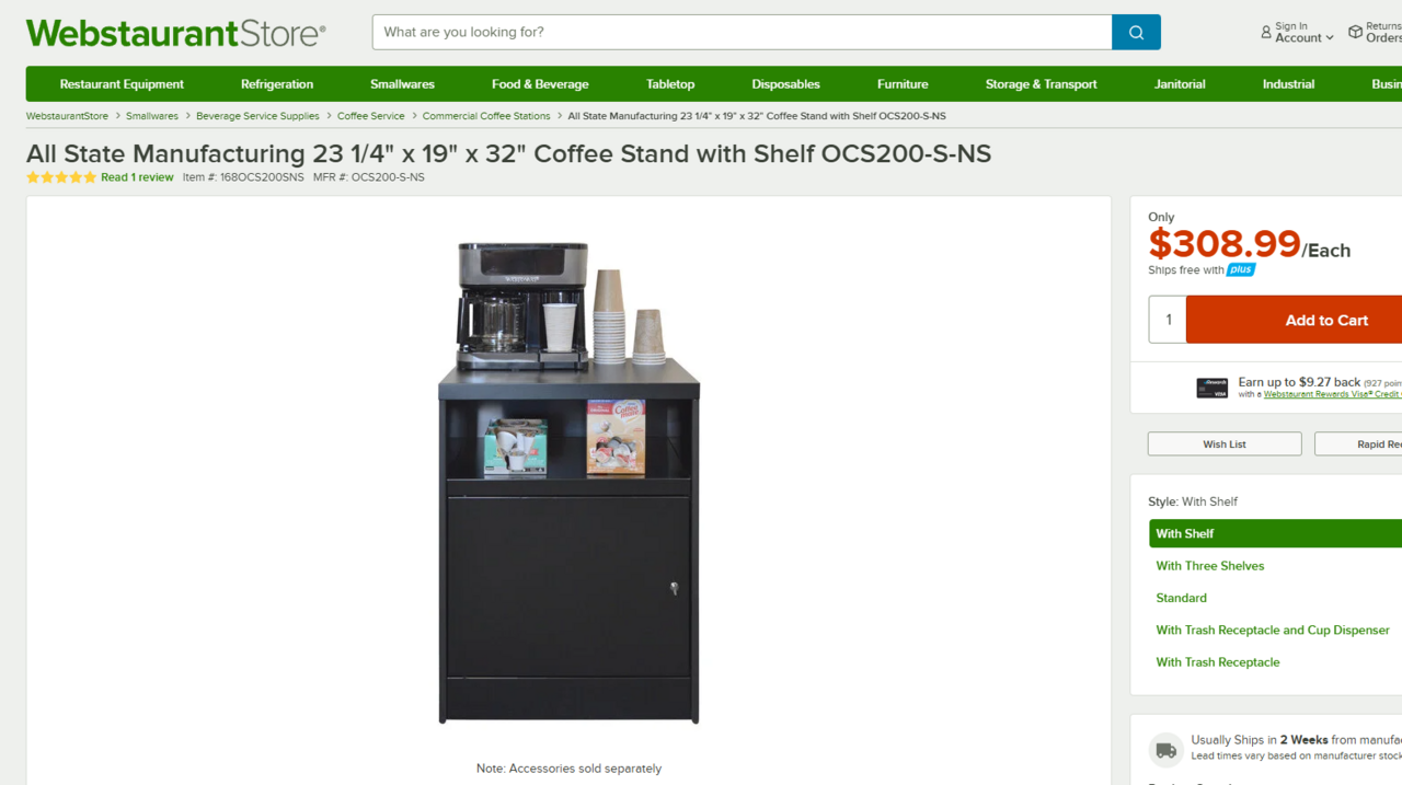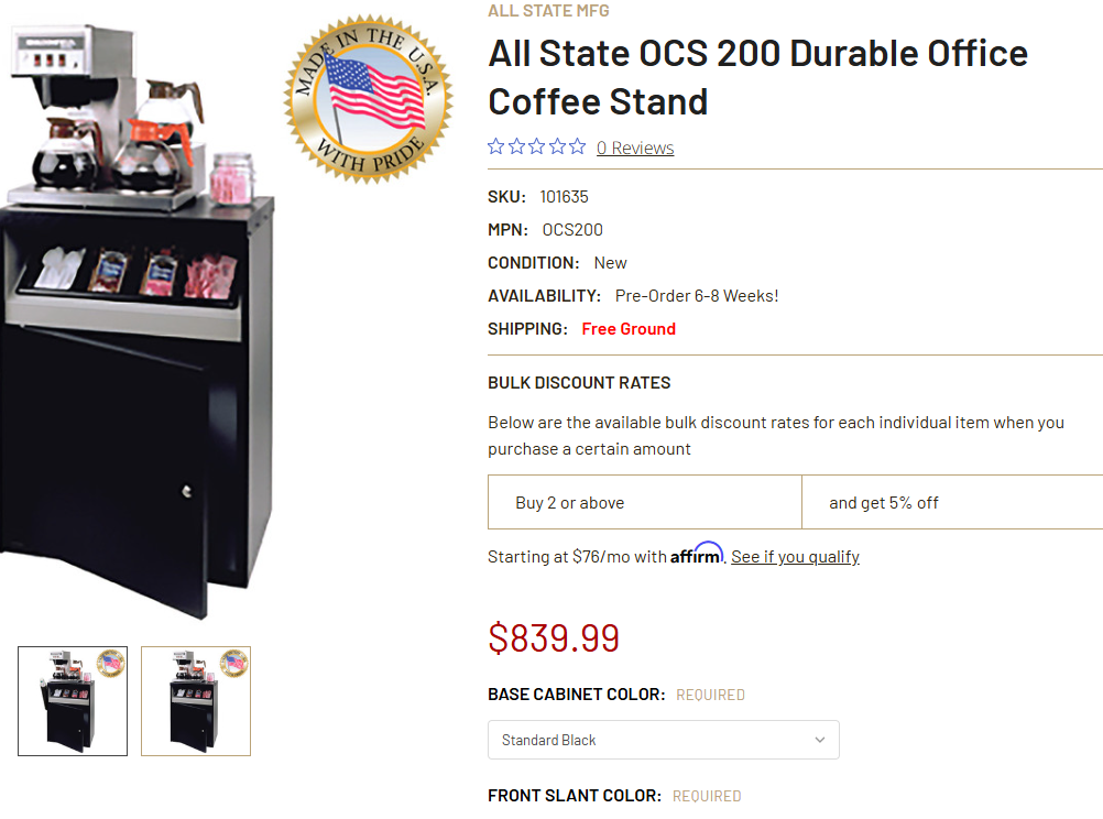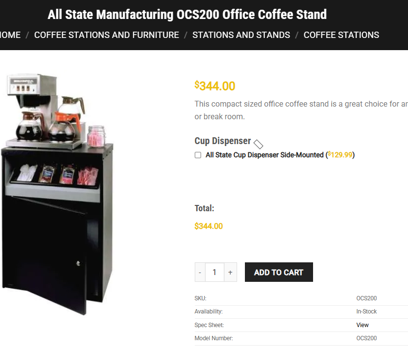 Ensure your facility is well equipped with this All State Manufacturing coffee stand. This coffee stand is a great way to provide your guests with a wide selection of coffee, tea, and hot beverage options! It features a durable double-wall metal construction with a black, vinyl-clad steel top that makes it able to stand up to the wear and tear of everyday use in your establishment.