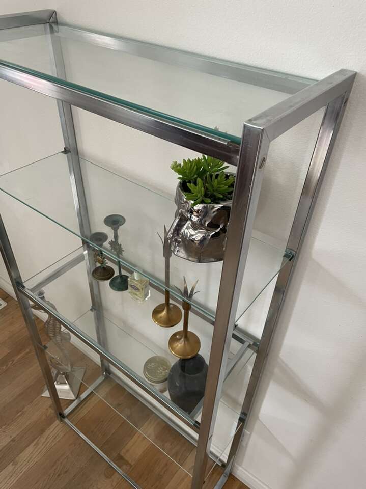 One of the five glass shelves is missing, and another one has a chip in the corner. It is pretty sturdy but it would probably be better for someone that doesn’t have small children.