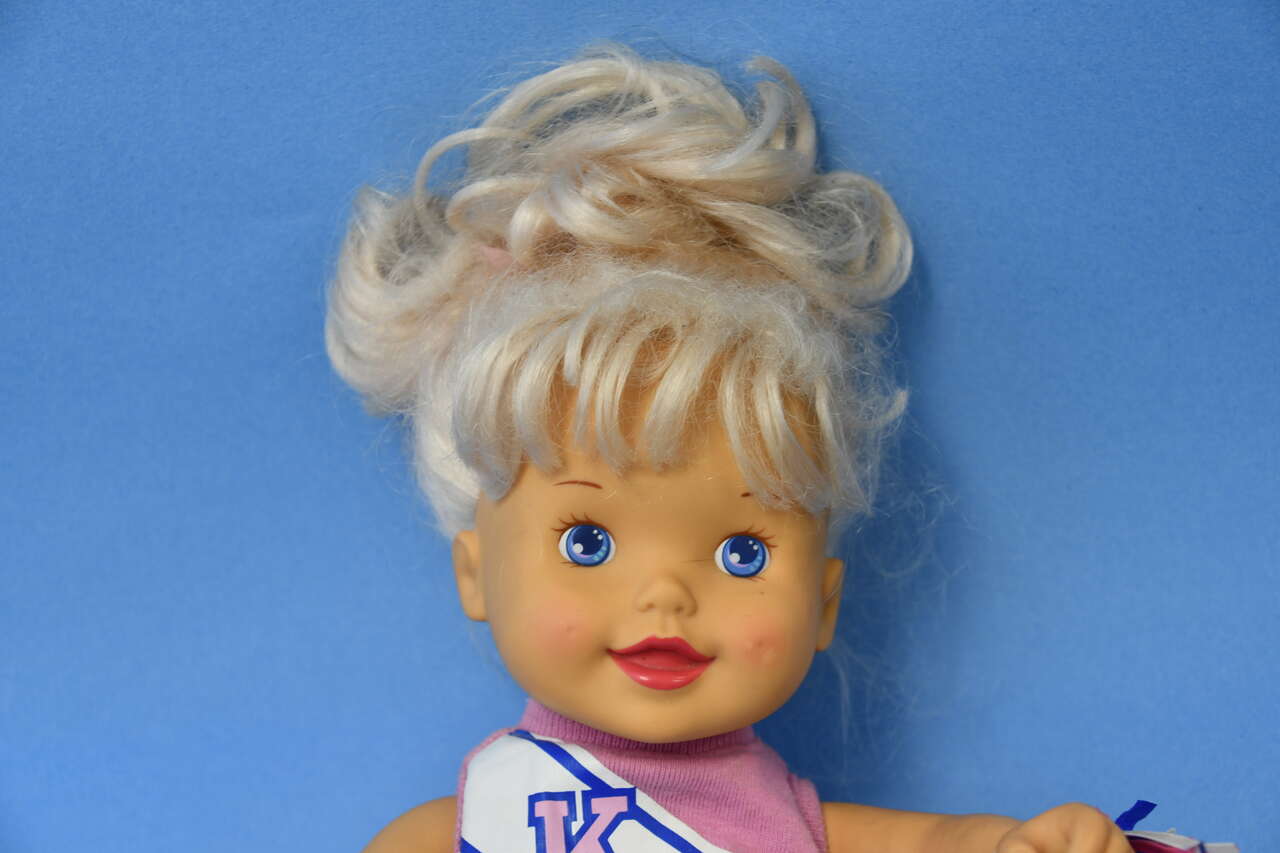 This VINTAGE 2000 KC "THE TALKING CHEERLEADER DOLL" is about 15". It CHEERS, TALKS & GIGGLES. It comes with CLOTHES, SHOES & POM POMS. Our homei s smoke free. Questions??? Please ask. We are located in Plain City. Csh only please.
