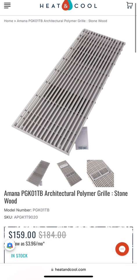 Captivating Stonewood Design: The grille features a captivating Stonewood design, adding a touch of natural elegance to your PTAC installation. Seamless Compatibility: Compatible with any option of the Amana WS900QW wall sleeve collections, the PGK01TB grille effortlessly integrates by snapping into the back of an Amana wall sleeve.