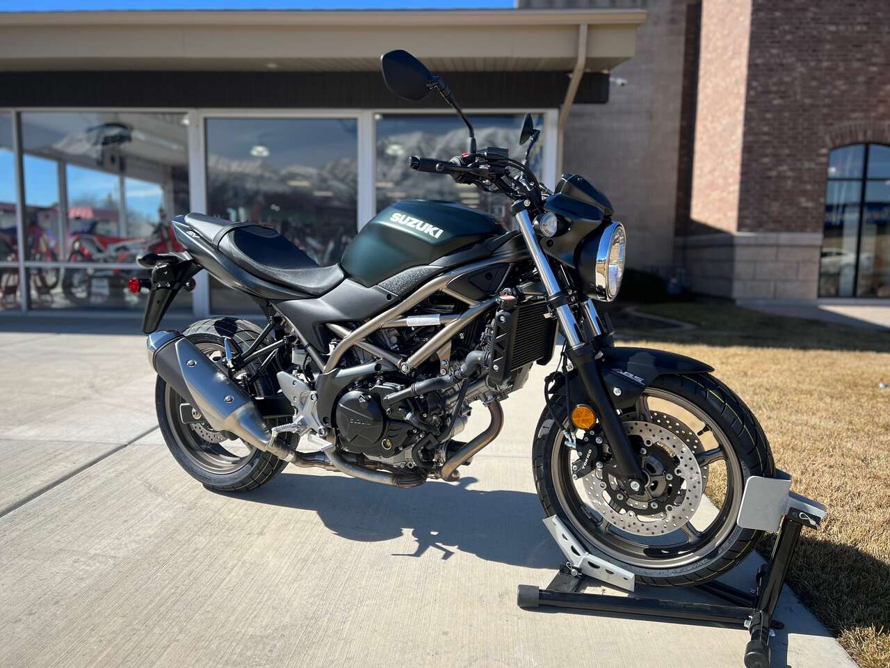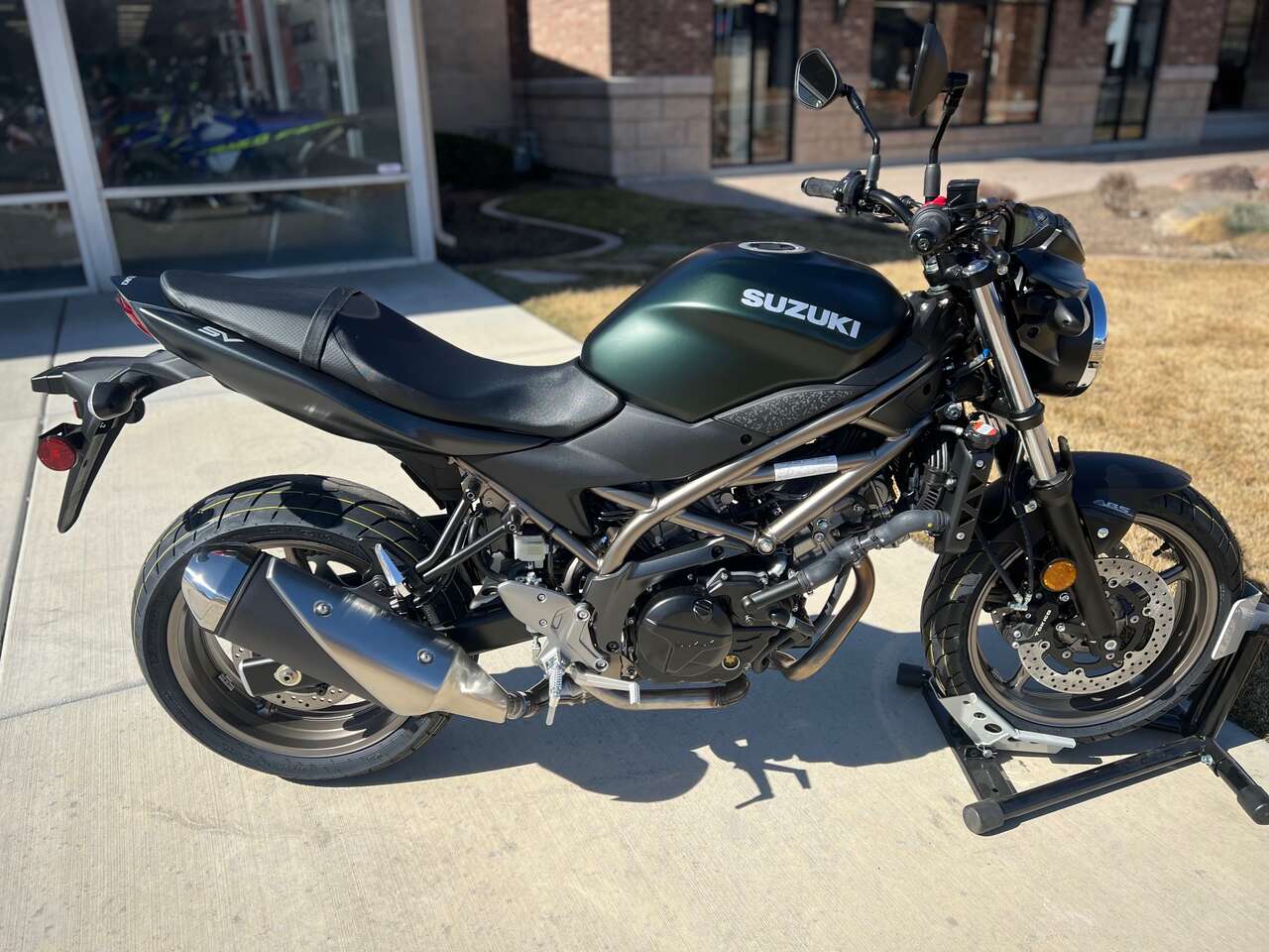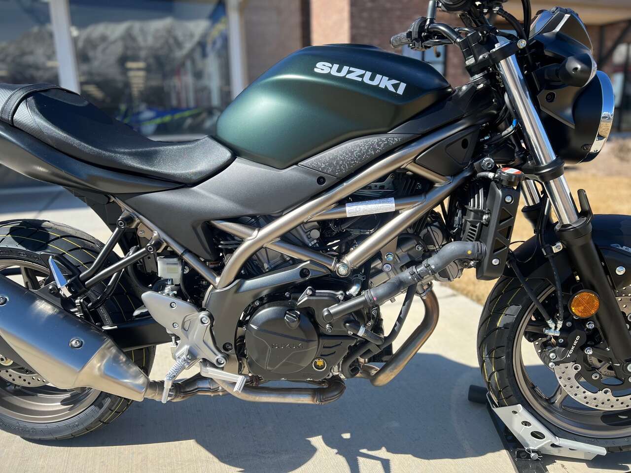 Suzuki riders struck motorcycling gold when the first SV650 debuted in 1999. Since then, this iconic motorcycle has seen continual improvements while still embodying the sporty personality that only a lively, mid-sized V-twin roadster can deliver. The 2025 SV650 ABS has a polished, dependable powerplant that provides surprising performance with low emissions and outstanding fuel economy, mounted in a trim and lightweight chassis that delivers a sporty, exciting ride.The SV650 ABS’s nimble chassis achieves exciting lean angles when cornering, with a pair of four-piston, ABS-equipped** Tokico brake calipers that grasp 290mm stainless-steel rotors up front. The 2025 SV650 ABS’s Pearl Matte Shadow Green / Metallic Matte Black No.2 bodywork is draped upon a dark gold trellis frame that rolls upon matching dark gold, cast-aluminum wheels.