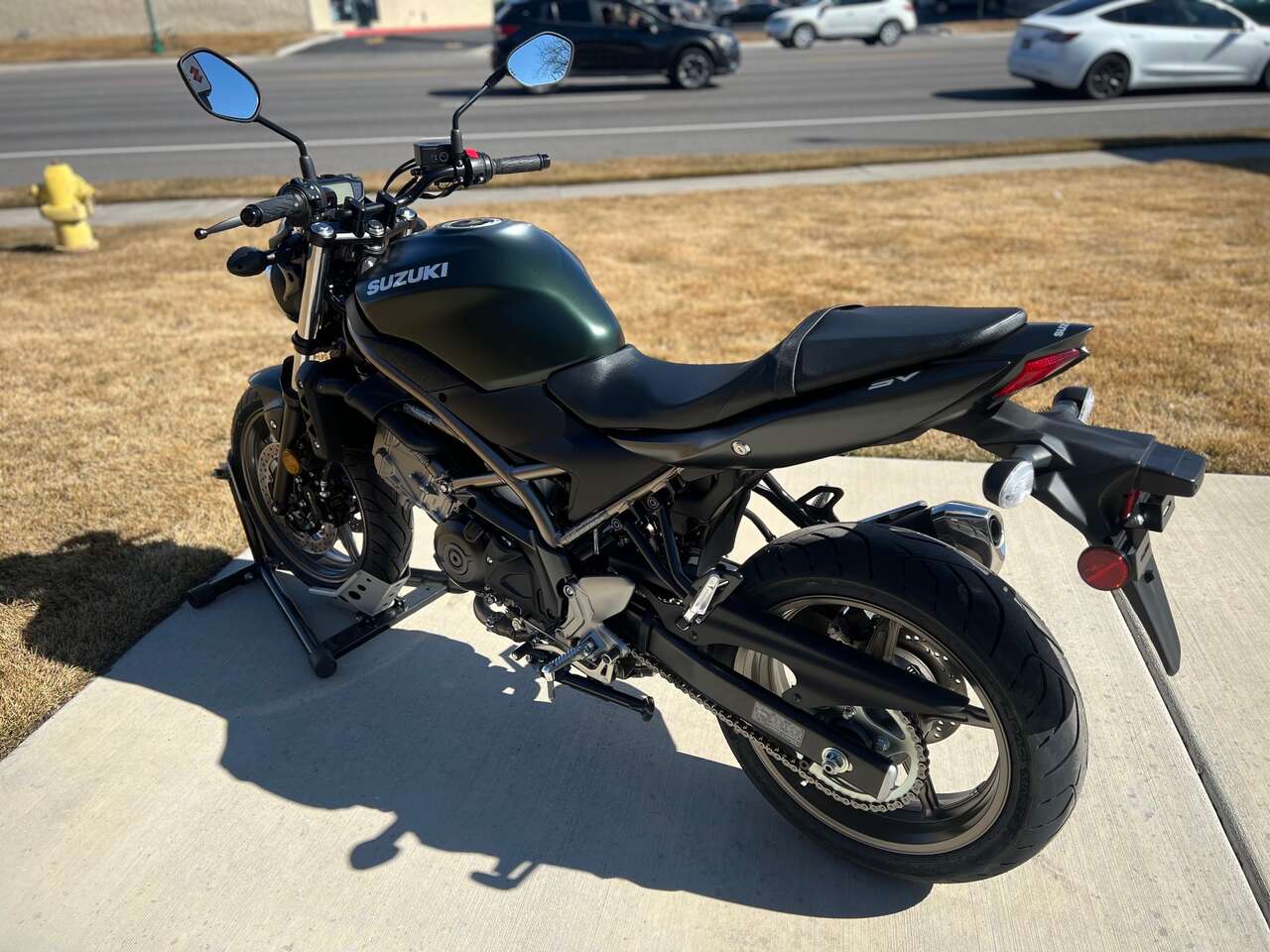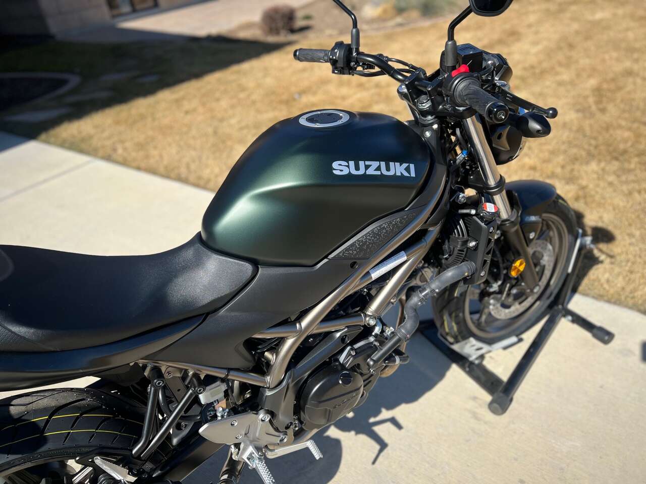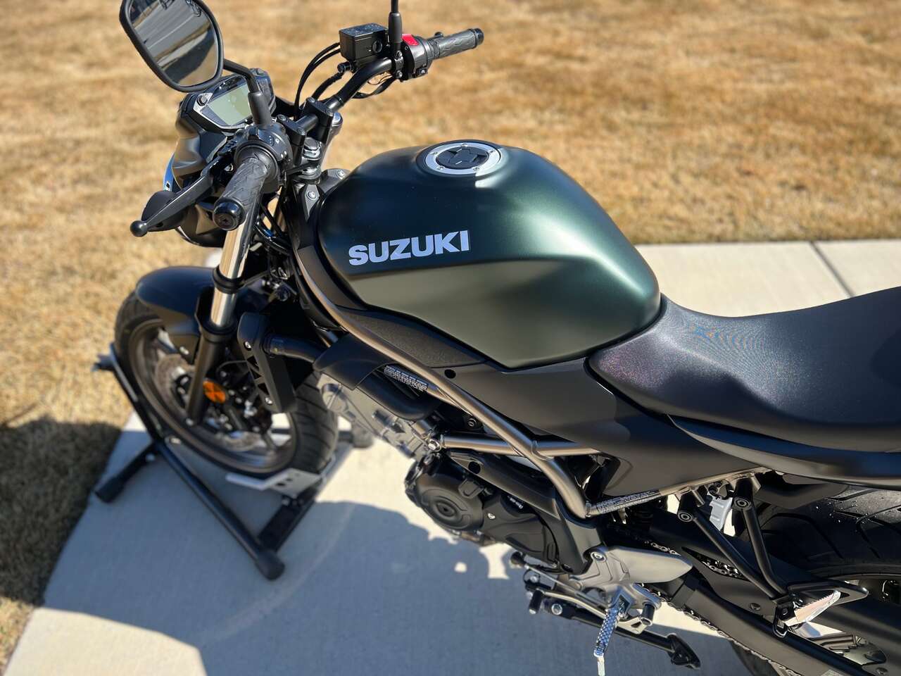 Suzuki riders struck motorcycling gold when the first SV650 debuted in 1999. Since then, this iconic motorcycle has seen continual improvements while still embodying the sporty personality that only a lively, mid-sized V-twin roadster can deliver. The 2025 SV650 ABS has a polished, dependable powerplant that provides surprising performance with low emissions and outstanding fuel economy, mounted in a trim and lightweight chassis that delivers a sporty, exciting ride.The SV650 ABS’s nimble chassis achieves exciting lean angles when cornering, with a pair of four-piston, ABS-equipped** Tokico brake calipers that grasp 290mm stainless-steel rotors up front. The 2025 SV650 ABS’s Pearl Matte Shadow Green / Metallic Matte Black No.2 bodywork is draped upon a dark gold trellis frame that rolls upon matching dark gold, cast-aluminum wheels.