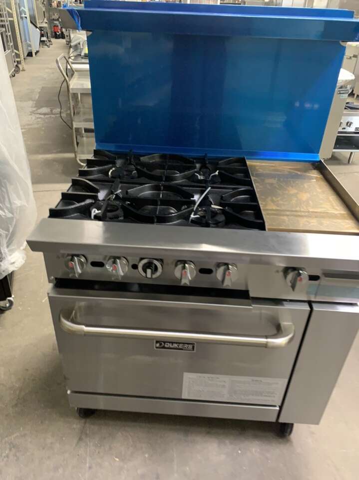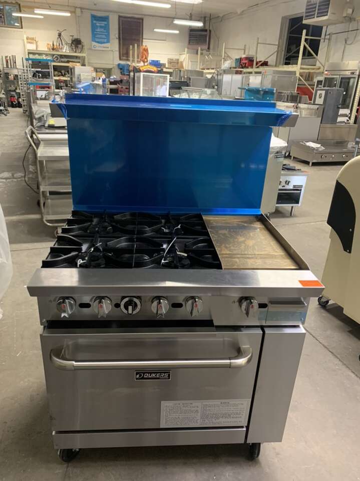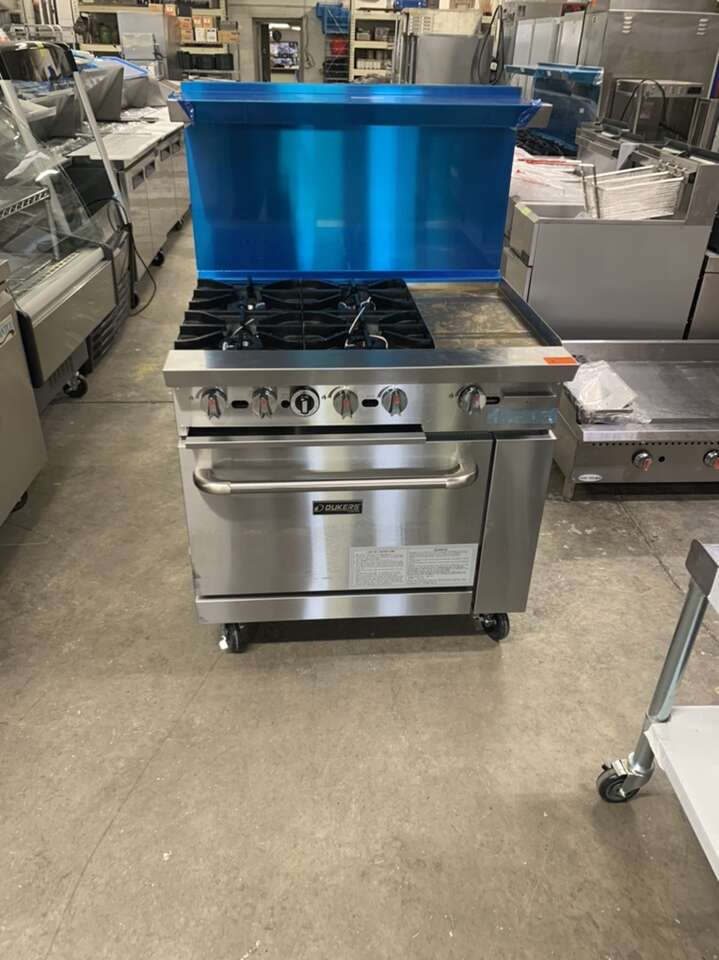 New Gas Range 36''WXX31.5''Dx36'' H with 4 open Burner and 12” Griddle ,full size standard oven . One year full warranty Parts and labor .comes with wheels for easy moving .36''WX30''DX36''H $2695 price reduced it was $2695 buy it for $2395