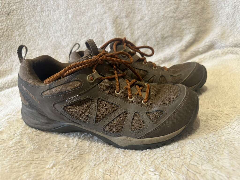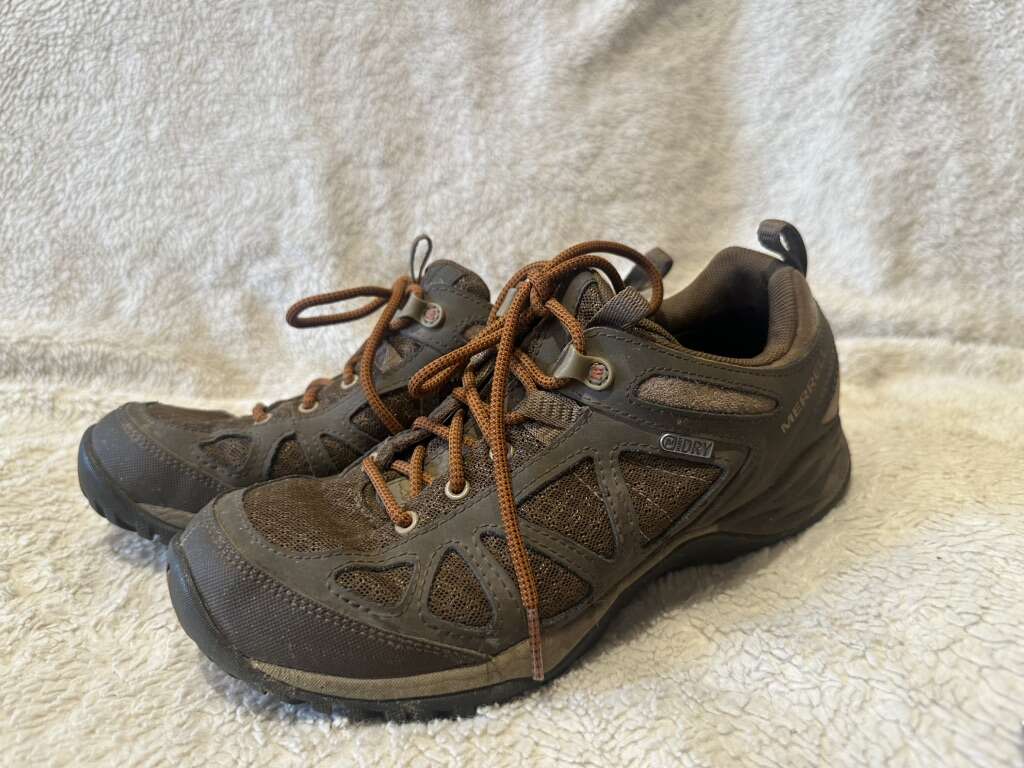 Merrell women’s size 8 brown with orange trim, waterproof mesh and leather hiking shoes. These are in good condition, see photos for details. I take cash or Venmo, but cash is preferred. Text is best. 801-201-4446.Check out my other ads for additional sizes and styles.