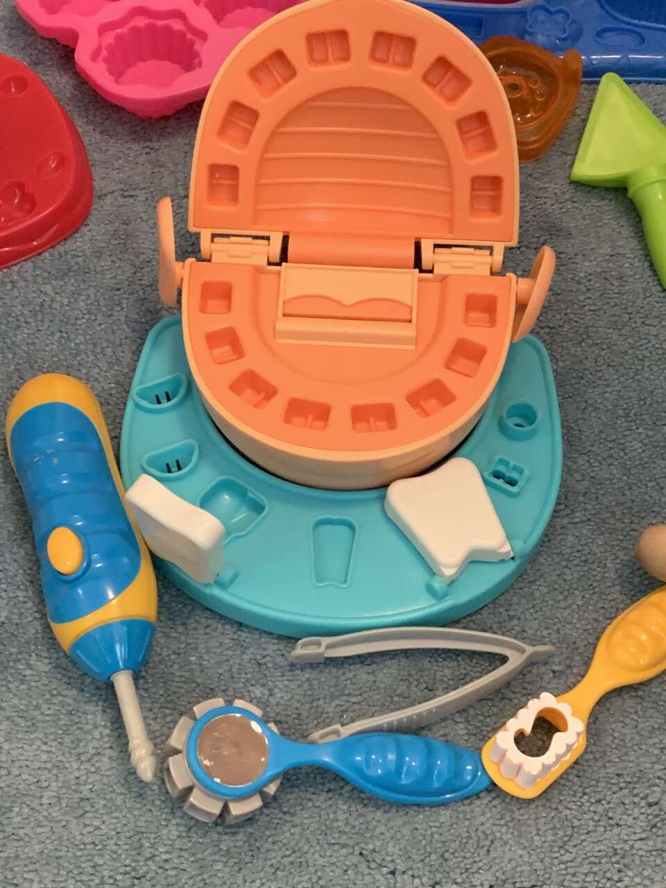 The dental set has a drill that is battery operated.