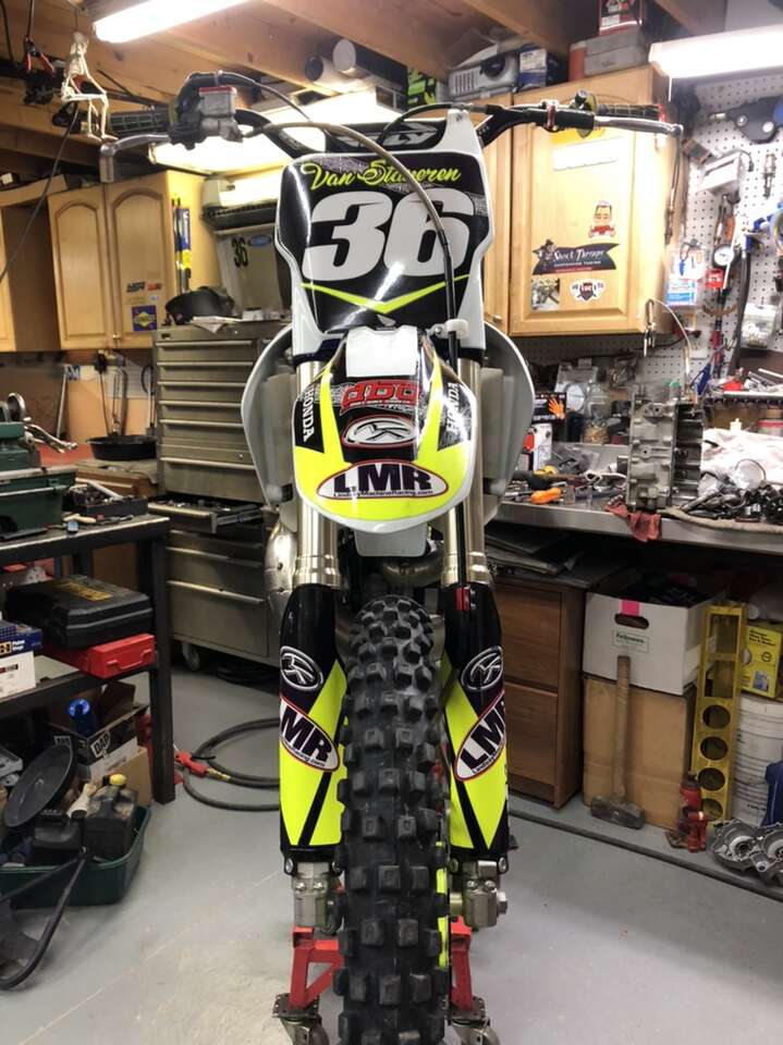 Everything has been replaced, rebuilt or powder coated. Wheel bearings,swingarm bearings, triple clamp bearings and linkage bearings replaced. Suspension rebuilt with new seals and bushings.wheels have new spokes after powder coating hubs and rims. Completely tore down to bare frame and back. Engine has been completely rebuilt and blasted to restore it better than new! New OE Honda crankshaft, bearings, seals and gaskets, complete clutch,Wiseco piston, cylinder replated, milled head,V-force reed cage. New chain and sprockets. New plastic kit and custom graphics. New Pro Circuit full exhaust. Lots more little things that I’m probably forgetting. Has approximately 5-10 hrs since the build. THIS BIKE RIPS! Ready to go. Cash only. No trades.