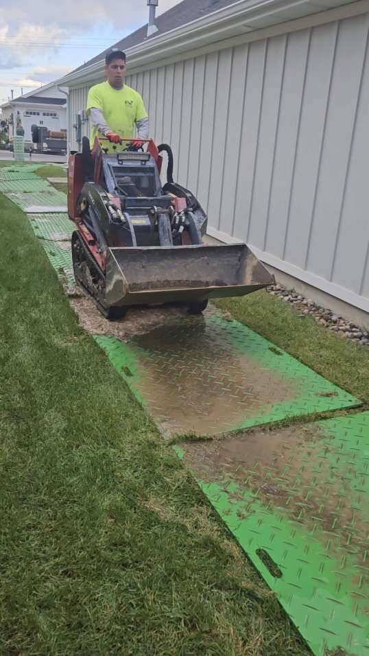 4x8 HDPE ground protection panels for rent. These are great to minimize impact to Lawns or property when accessing with heavy equipment or trucks. Simply lay them on the ground and drive over the top. Rental rates 10 panels per week $250 5 panels per week $175