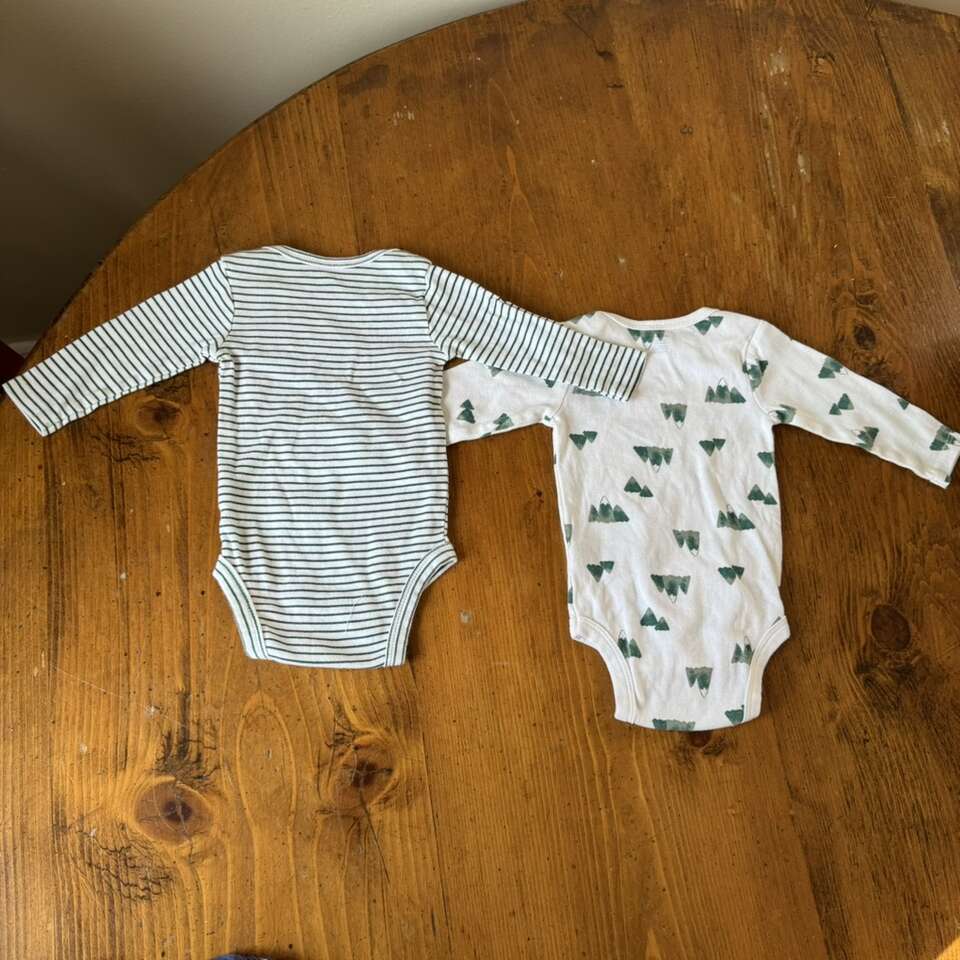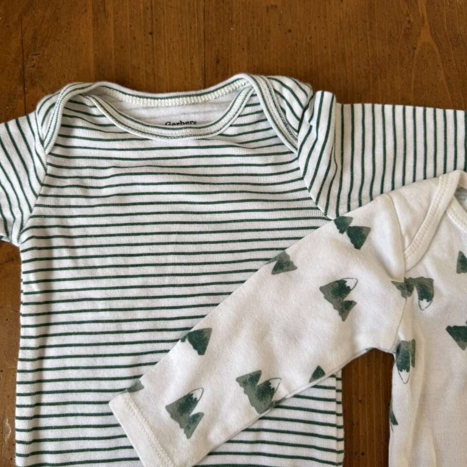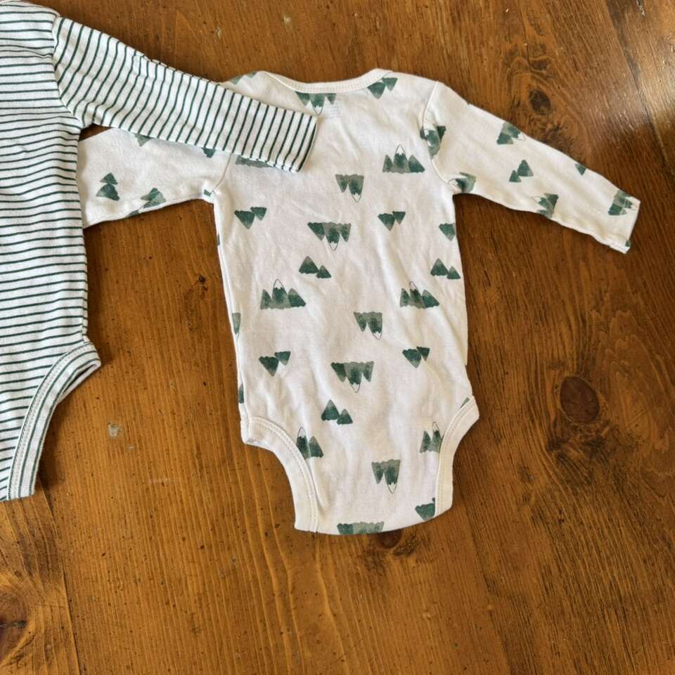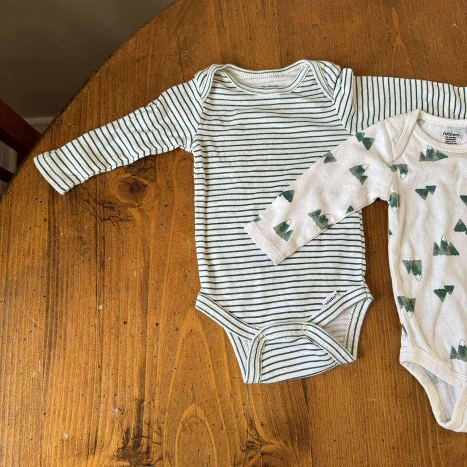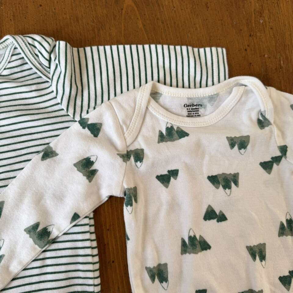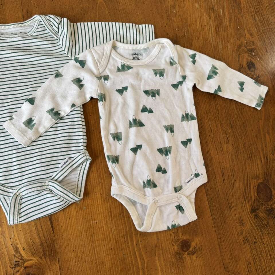 Gerber Green & White Onesies 0-3 Mountains Stripe
