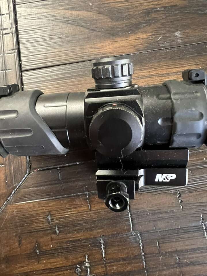 Brand new never used. I decided to go a different route. Nothing wrong with it. Comes with mount for a rail