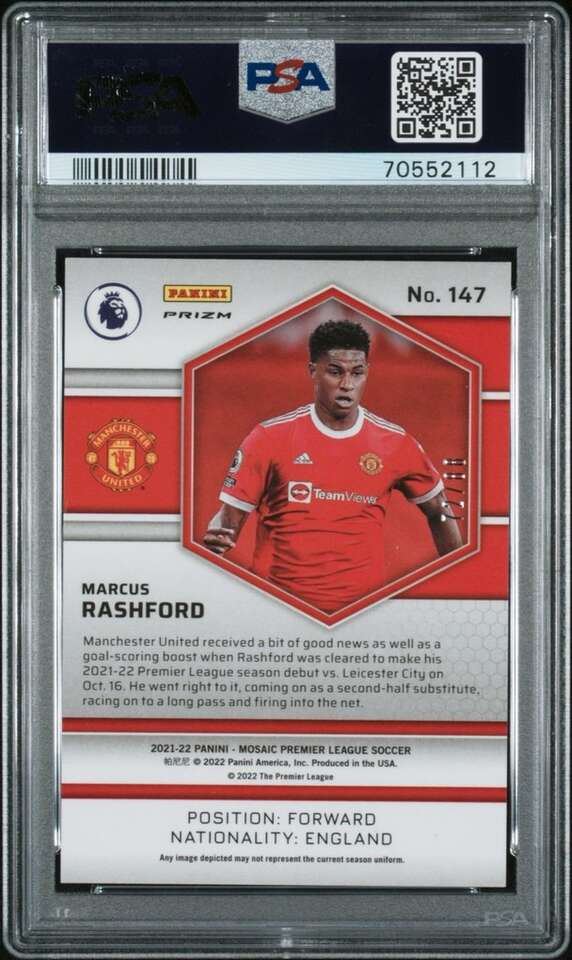 2021 Mosaic P/L Marcus Rashford Red & Gold Choice #147 PSA 10 Manchester United