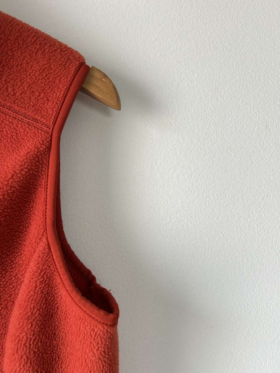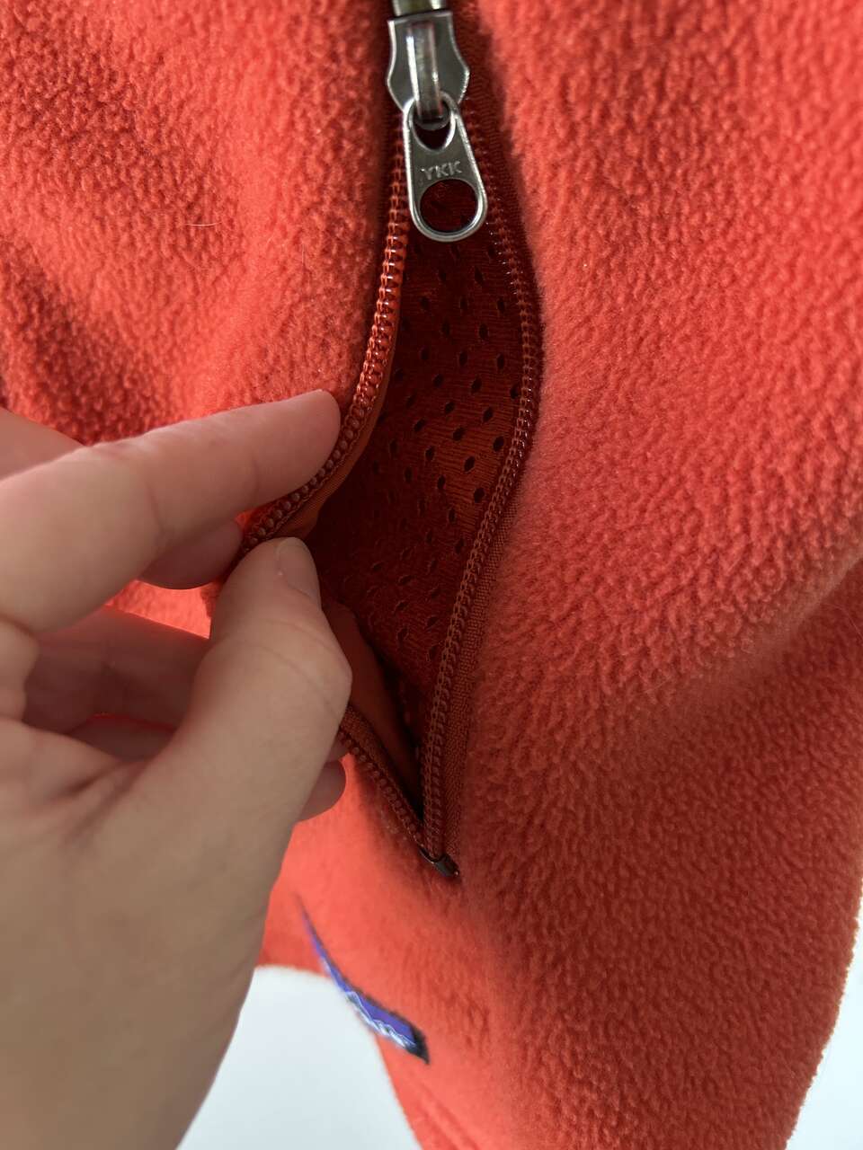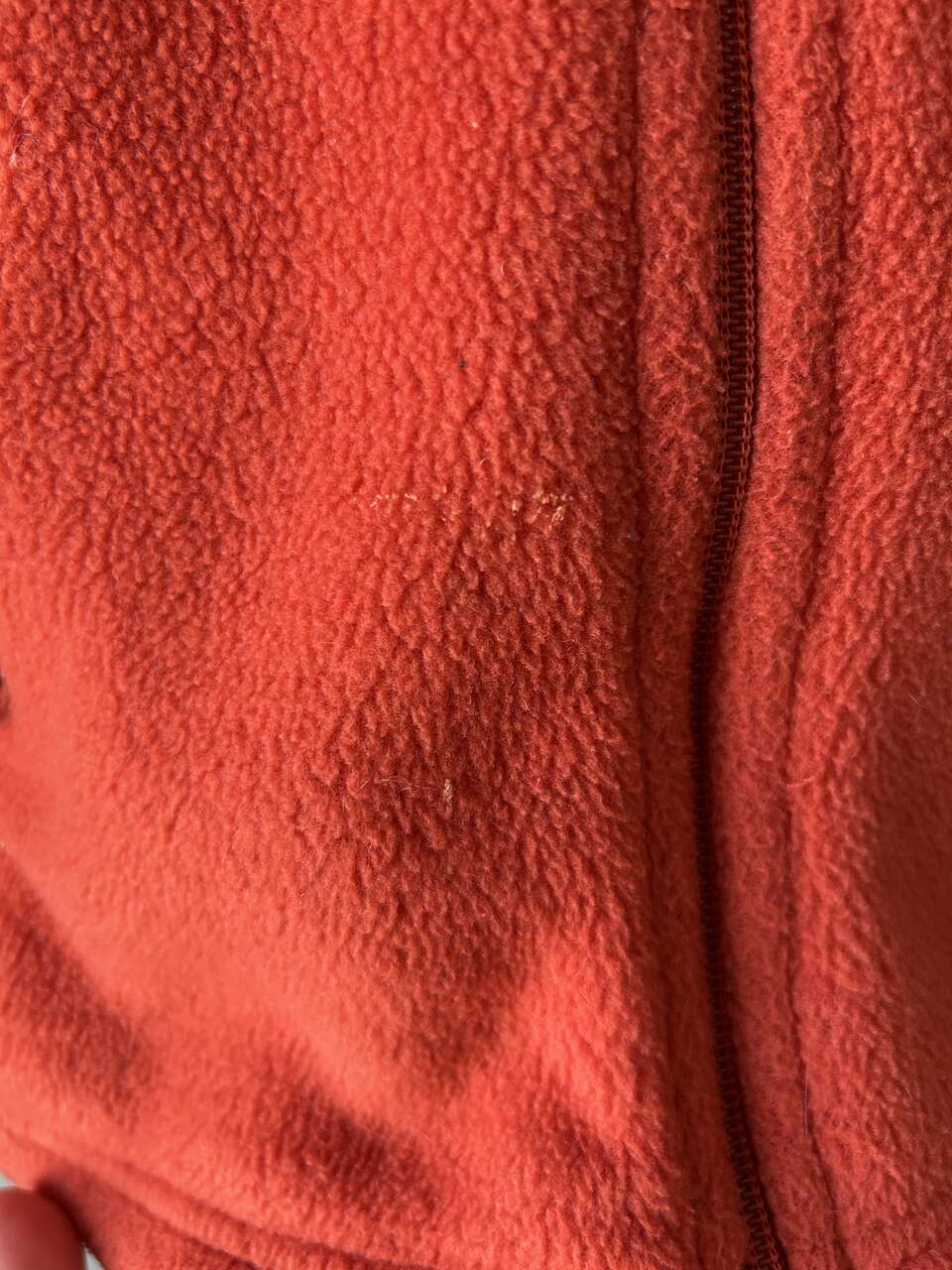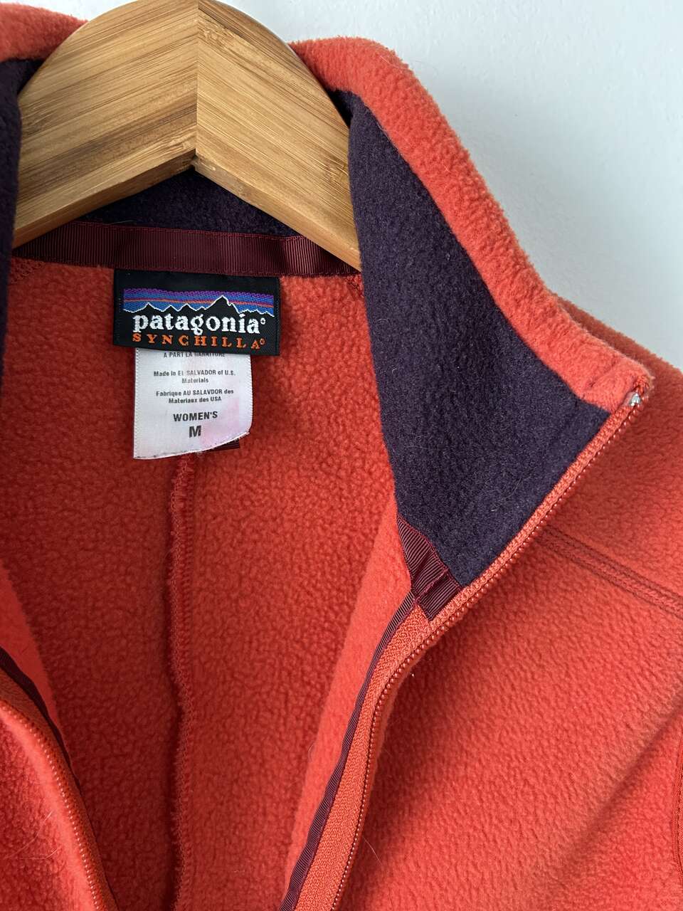 VenmoPatagonia Women’s Synchilla Fleece Vest, size medium, in red orange. I bought this a long time ago but can’t remember when. It’s still in good condition, except for a small piece of fabric unravelling at the bottom of the zipper and very small white paint spots on the bottom right side of the vest (see pictures). Both issues can be easily fixed, I just haven’t had time. This is a cozy vest, great for the outdoors, and has 2 pockets with mesh lining.