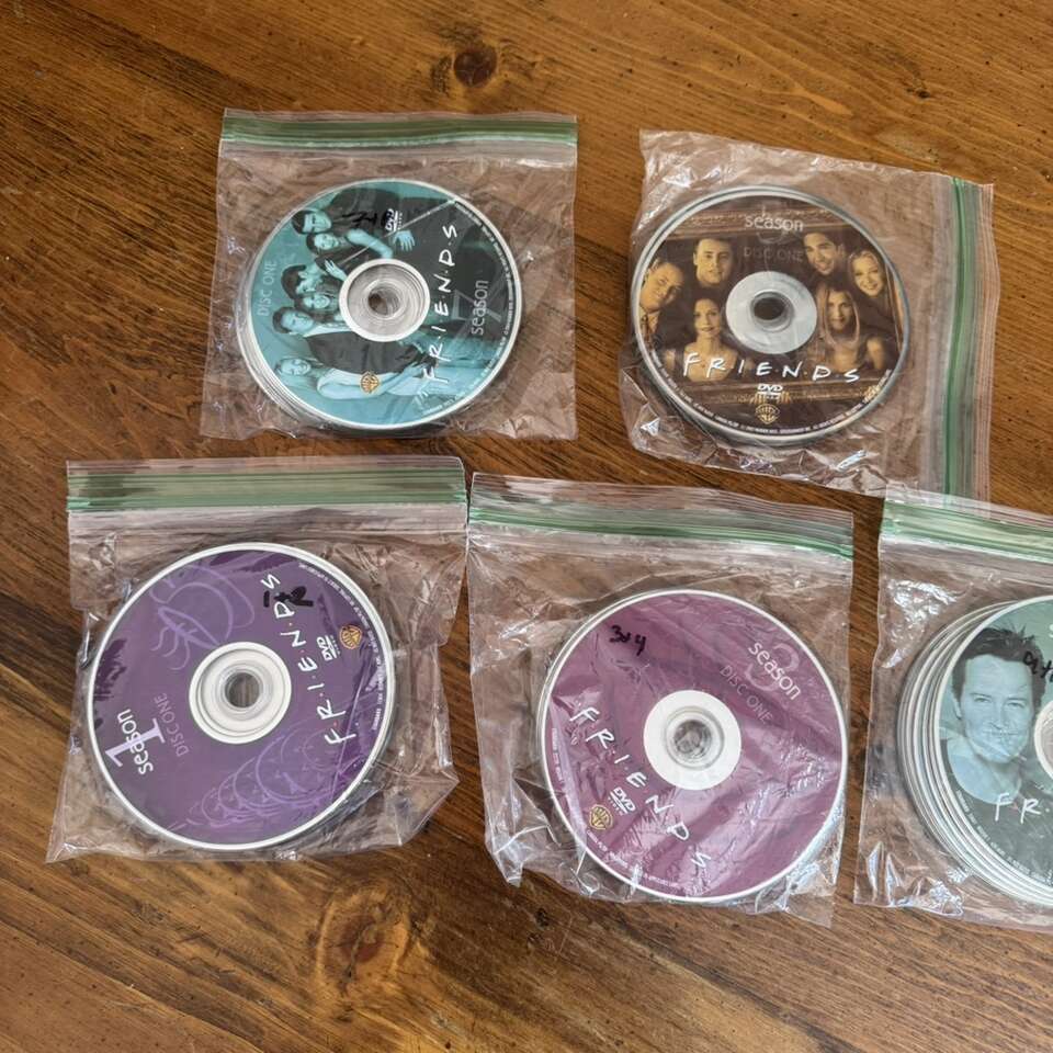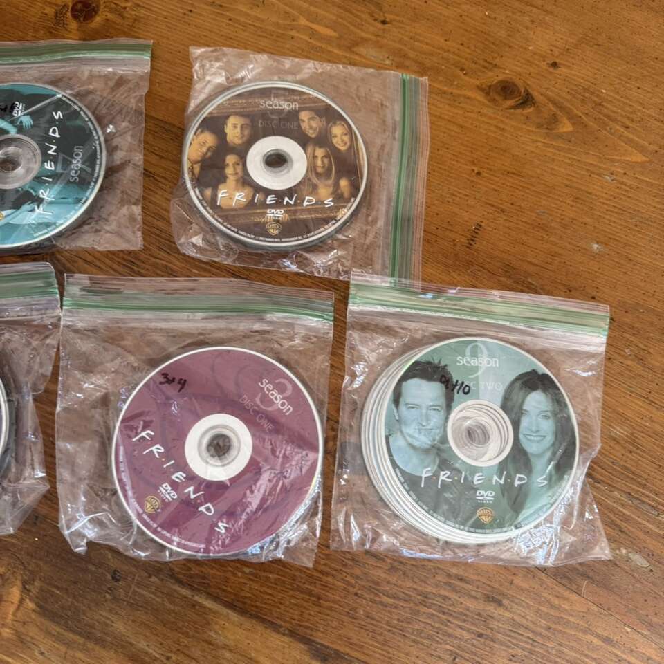 Friends TV Series DVD Set Seasons 1-10 Missing Season 9 Disc 1 Missing Season 10 Disc 1 They do have some light scratches but play fine