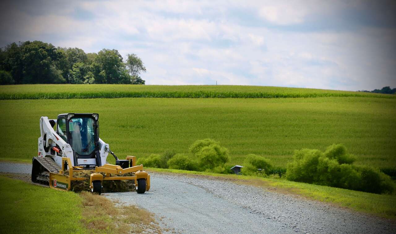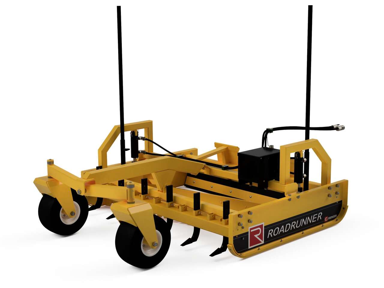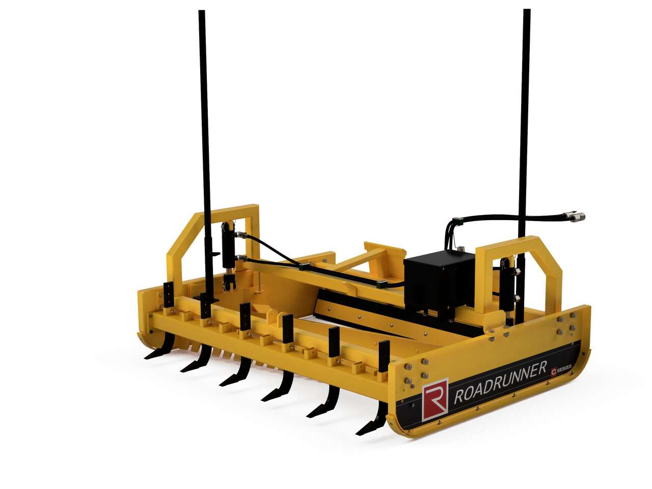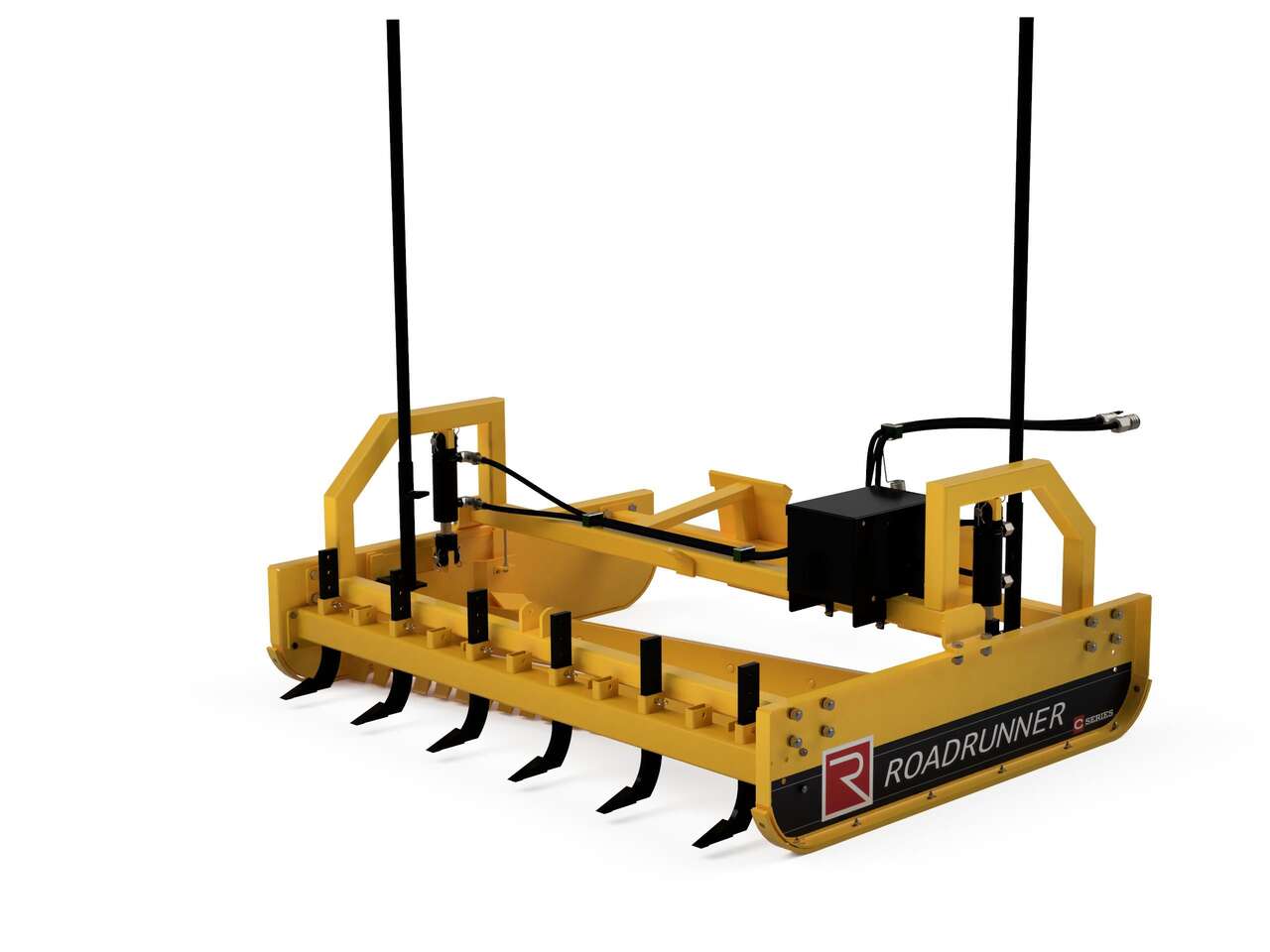 We stock most of this product line. Shown are the 7ft wide Skid Steer Dual Hydraulic Graders with bolt on accessories. We also stock the 8ft wide version for larger machines.