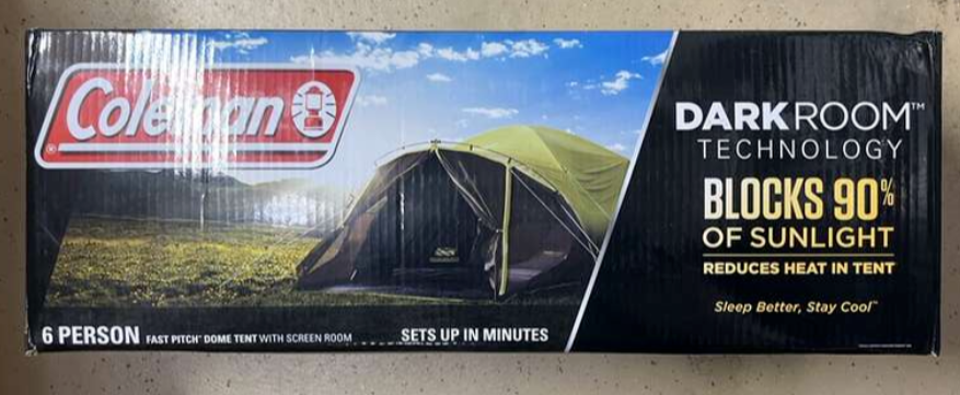 Brand New Coleman 6-Person Darkroom Fast Pitch Dome Tent w/Screen Room.