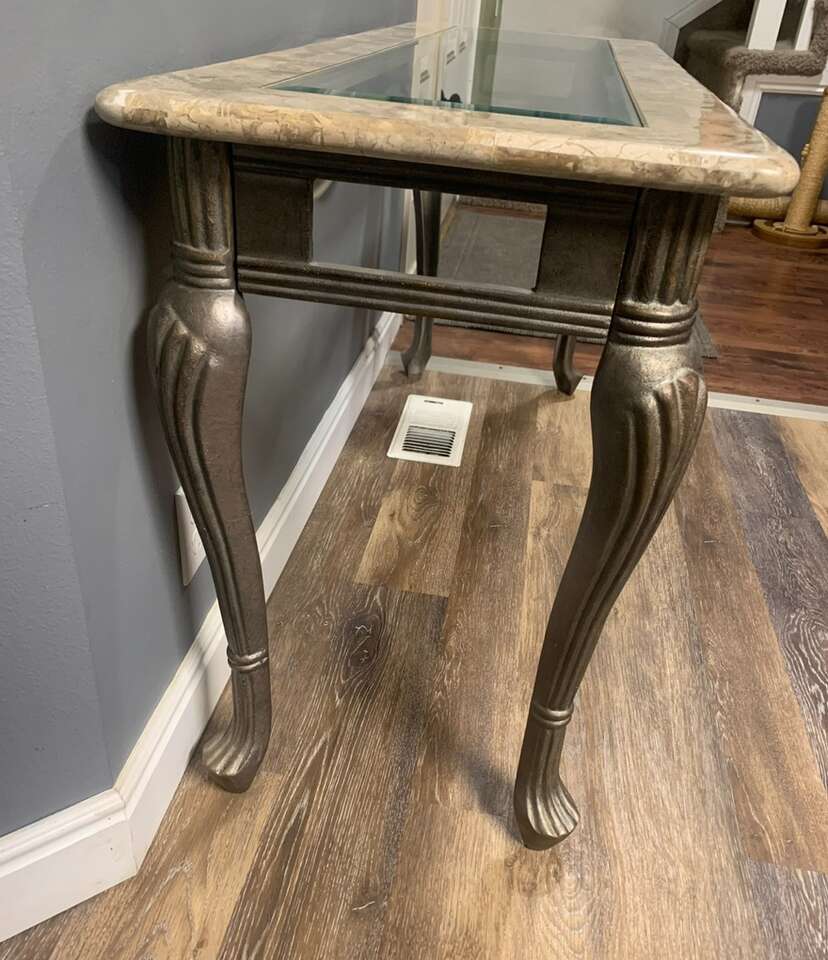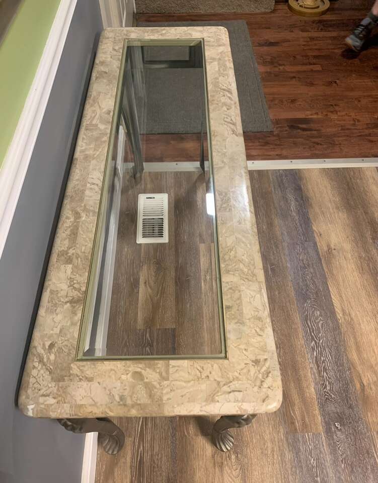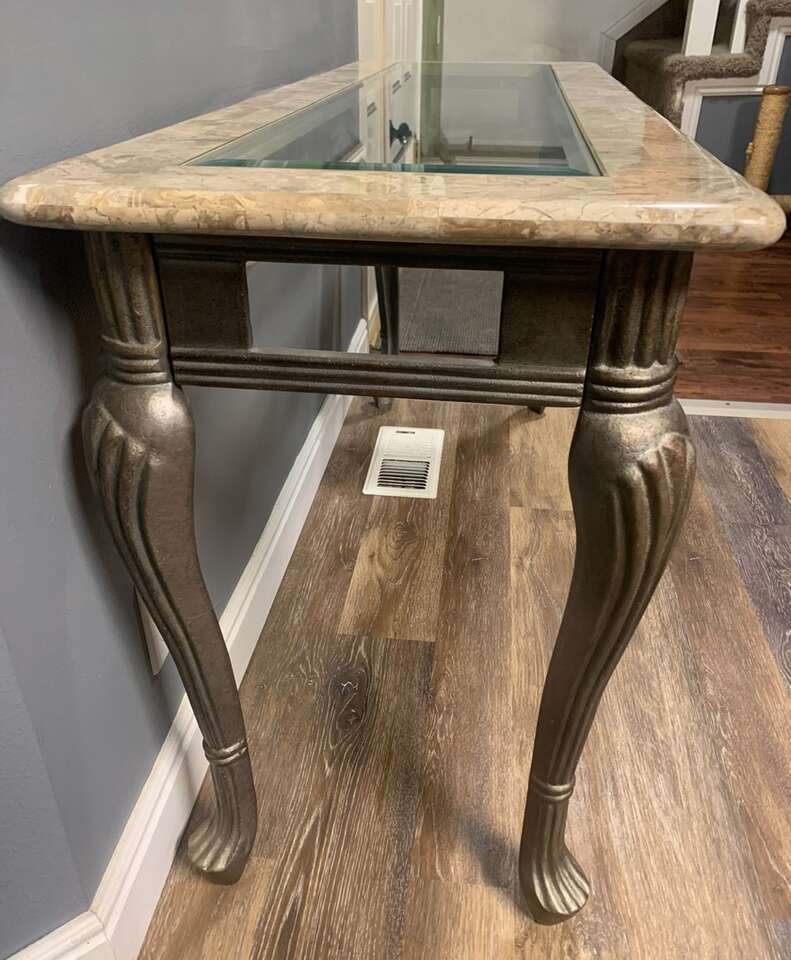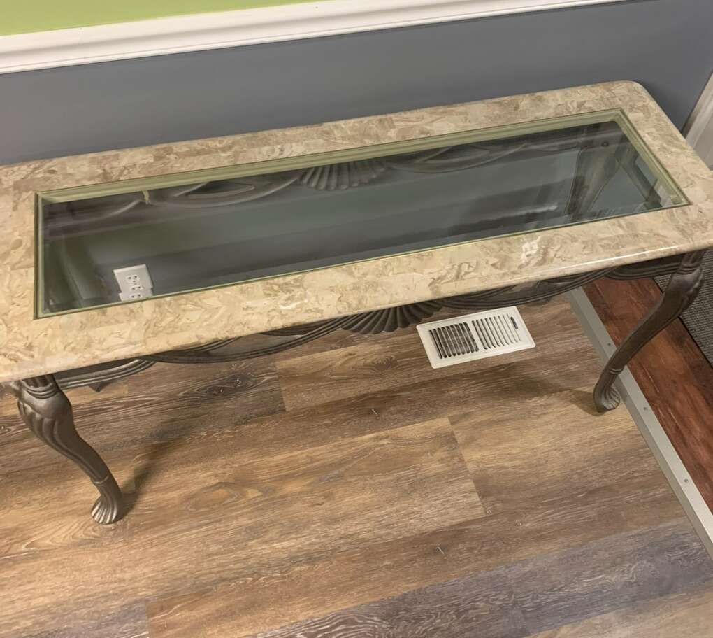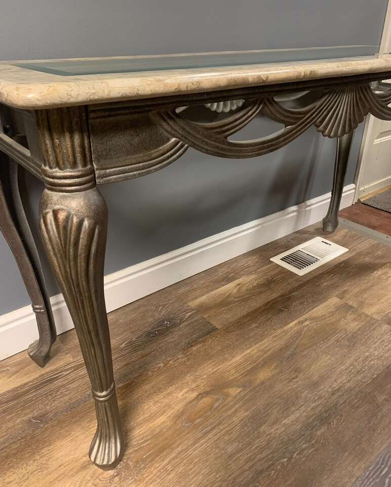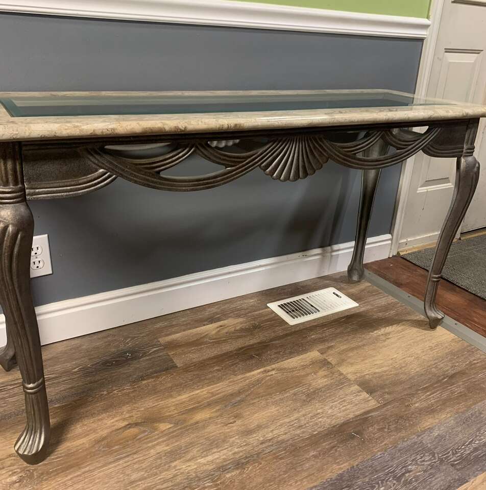 Beautiful Accent Table console/Entryway Iron marble and glass top Measurements 50.5 Long 27 Tall 17.5 Deep