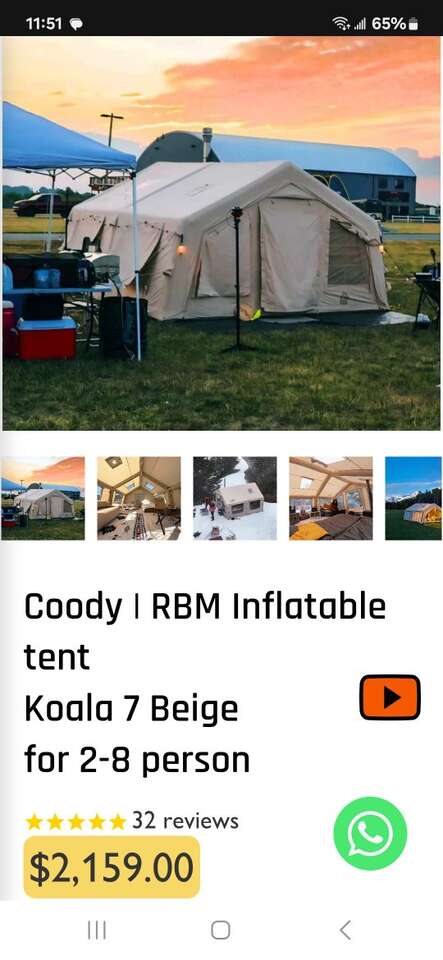 VenmoBrand New. Coody RBM Infatable Tent / Koala 7. See pictures for details. Retails for $2200.