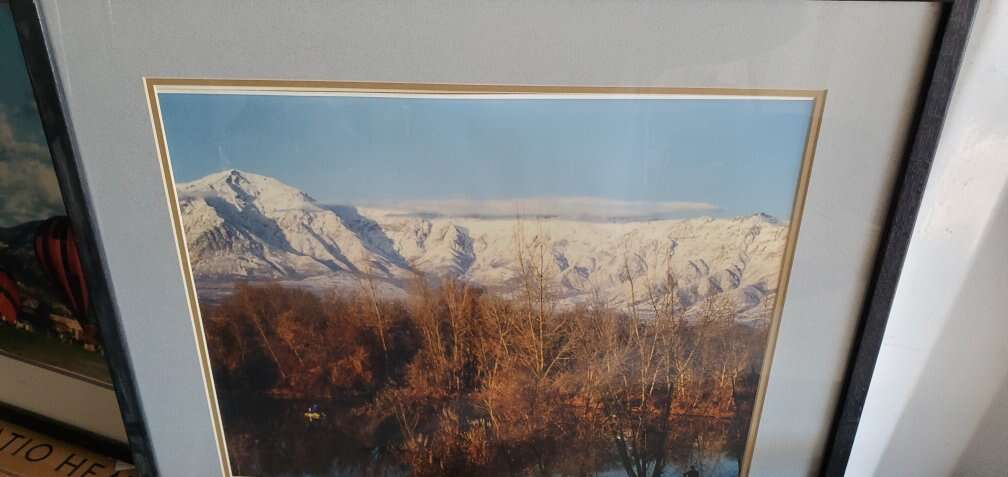 These 2 glass wood framed original vintage photos of the Ogden Valley that include the Hot Air Balloon show in Eden and what appears to be the 21st street pond with Mount Ben Lomond looming in the background.