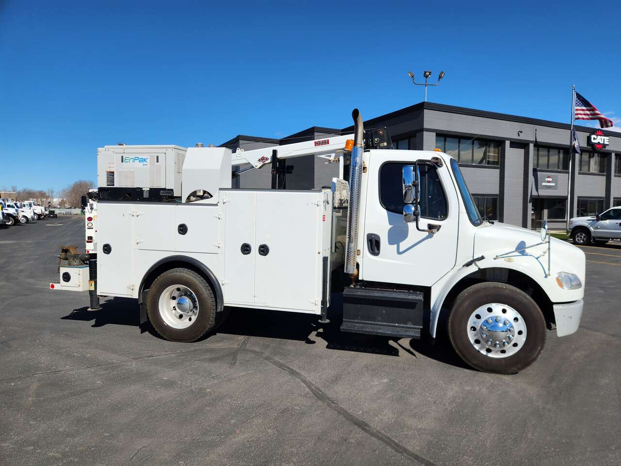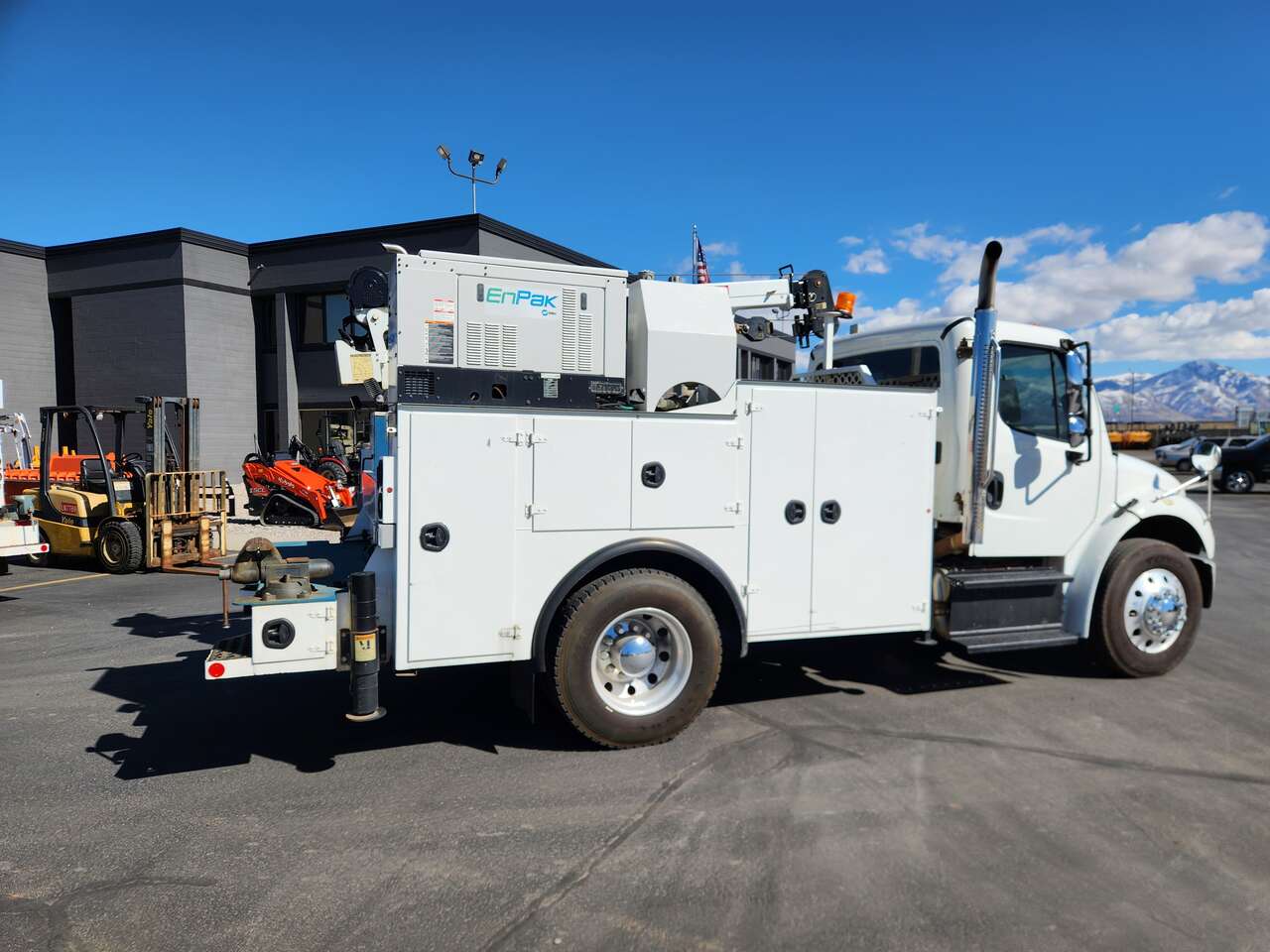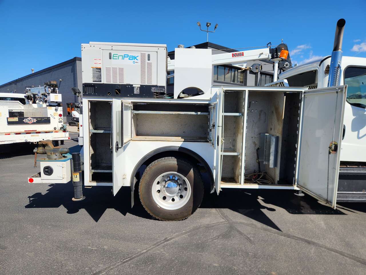 IMT Dominator 2S3 Bed, IMT 8,600 lbs Crane (2016 Year Model), Enpak Diesel System 1,290 Hours (Hydraulic Operation of Crane, 60CFM Air Compressor), (2) Hydrarulic Outriggers, Wireless Remote, Cummins 6.7-240 Diesel (240 HP), Allison 2500 RDS Automatic Transmission, Spring Suspension, 5.88 Rear End Ratio, GVWR 25,500 lbs (Non-CDL), Air Brakes, 230,896 Miles, 10,049 Hours,